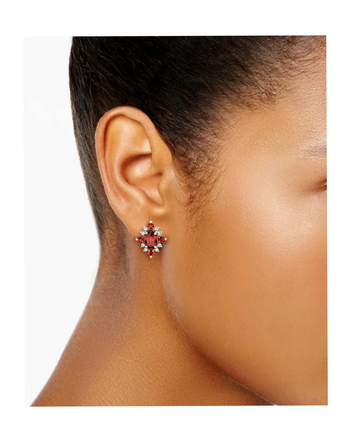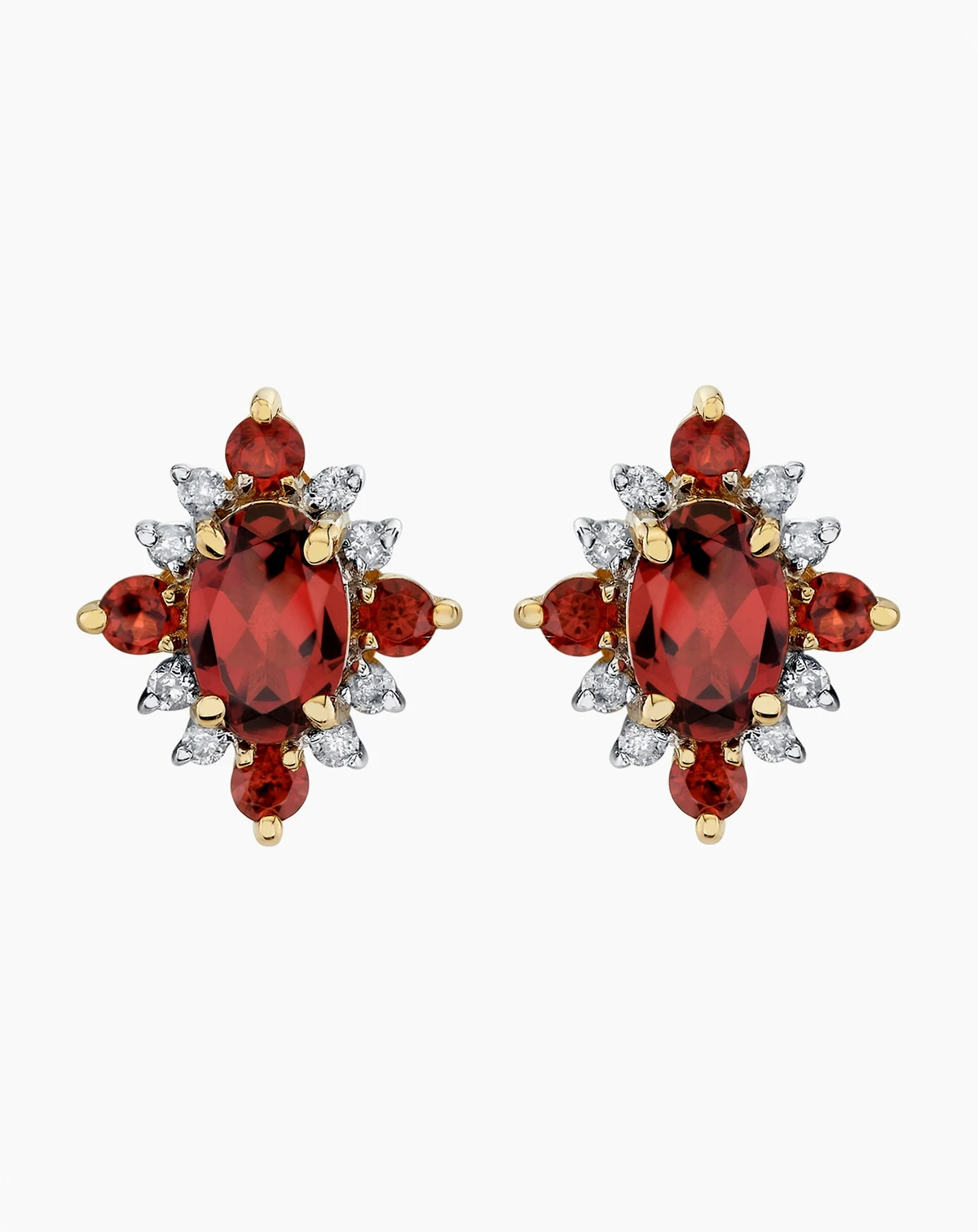 Garnet (1-11/40 ct. t.w.) & Diamond (1/8 ct. t.w.) Stud Earrings in 10k Yellow Gold