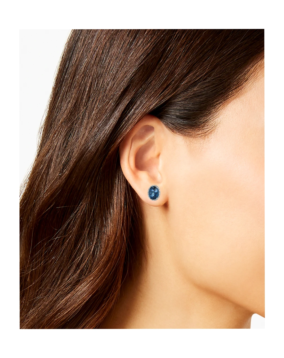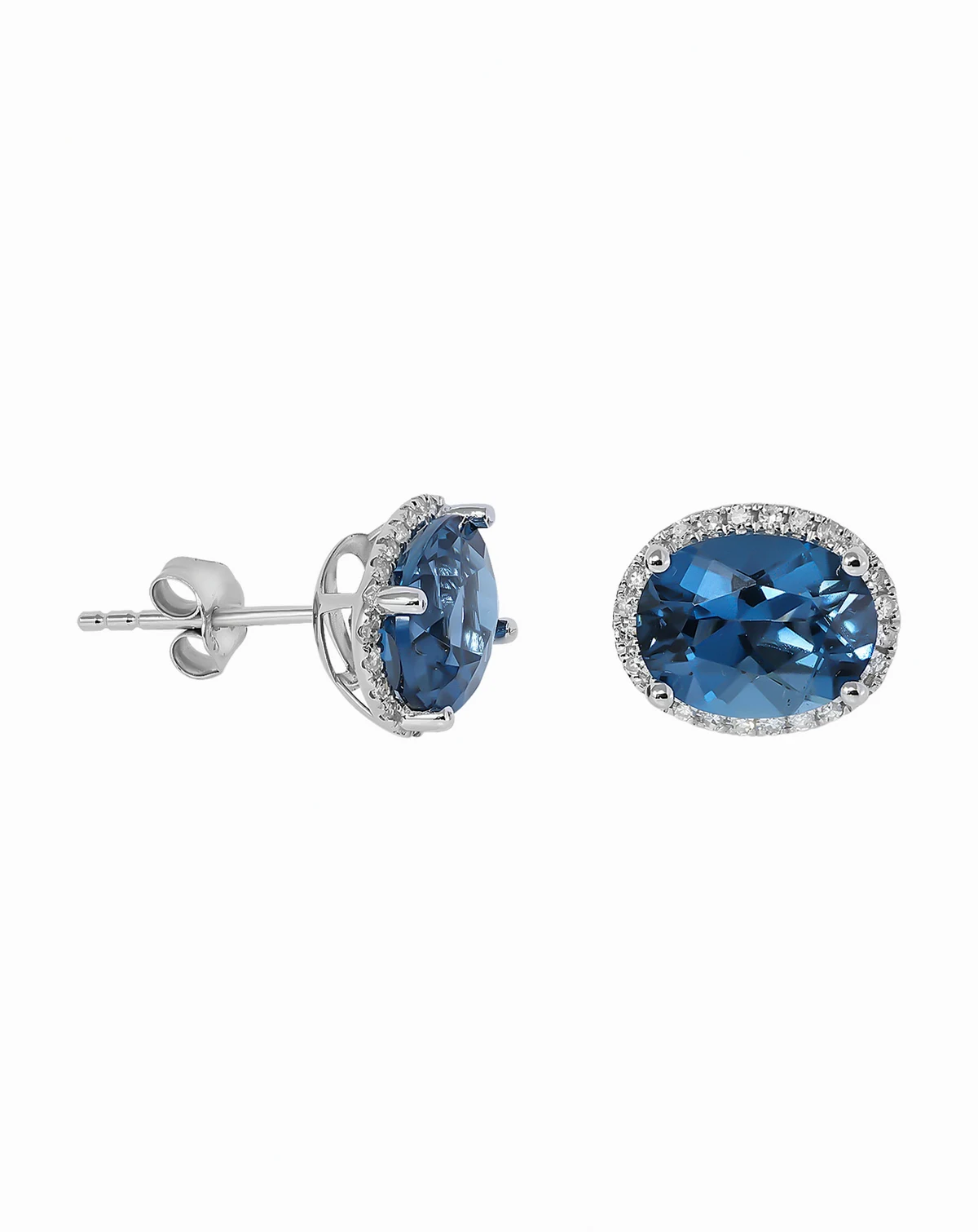 Crafted with oval London blue topaz and surrounding diamond accents, these Macy's earrings create a luxurious stud design. The white gold setting provides brilliant contrast and elegance.
