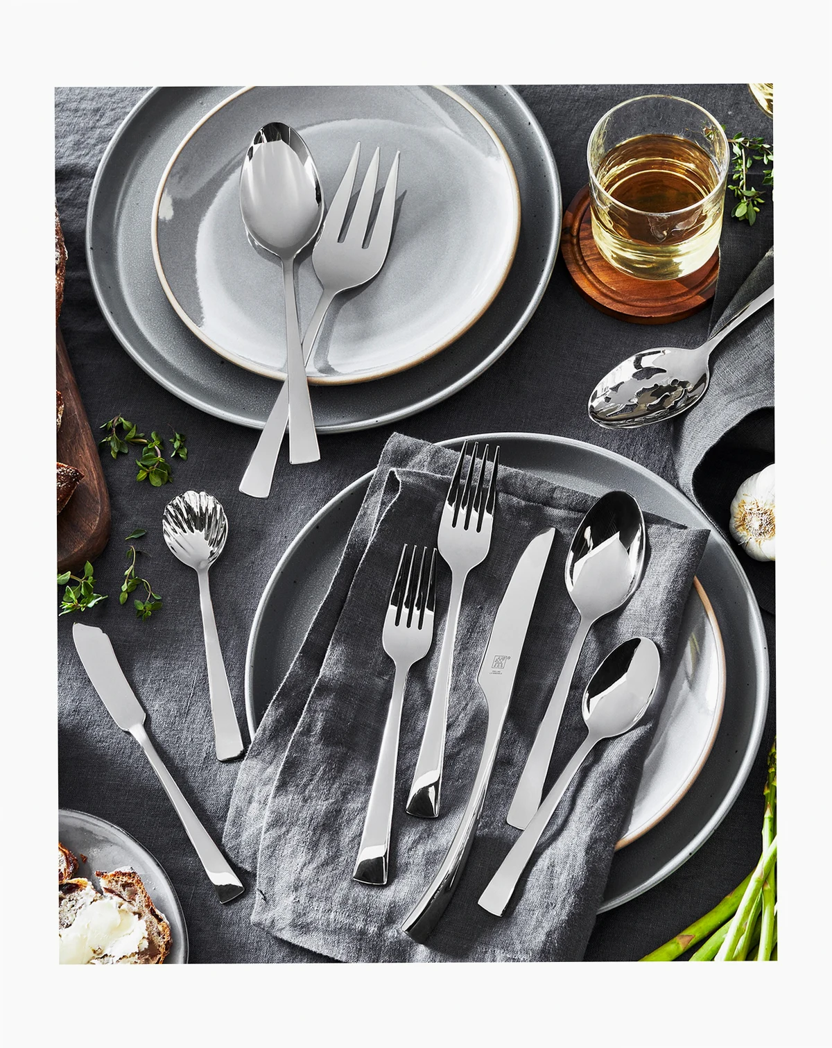 As practical as it is polished, the Bellasera flatware set features contemporary styling with a brilliant, mirror-like finish in stainless steel that will complement any table setting. A flawless choice from J.A. Henckels. Zwilling J.A. Henckels flatware is heavy gauge weight, produced from 18/10 stainless steel. The 18% chrome provides for maximum corrosion resistance and the 10% nickel gives each piece a brilliant finish. Other products that do not claim to be produced from 18/10 stainless steel or that use 18/0 stainless steel do not offer these benefits and can corrode in a short time of use.