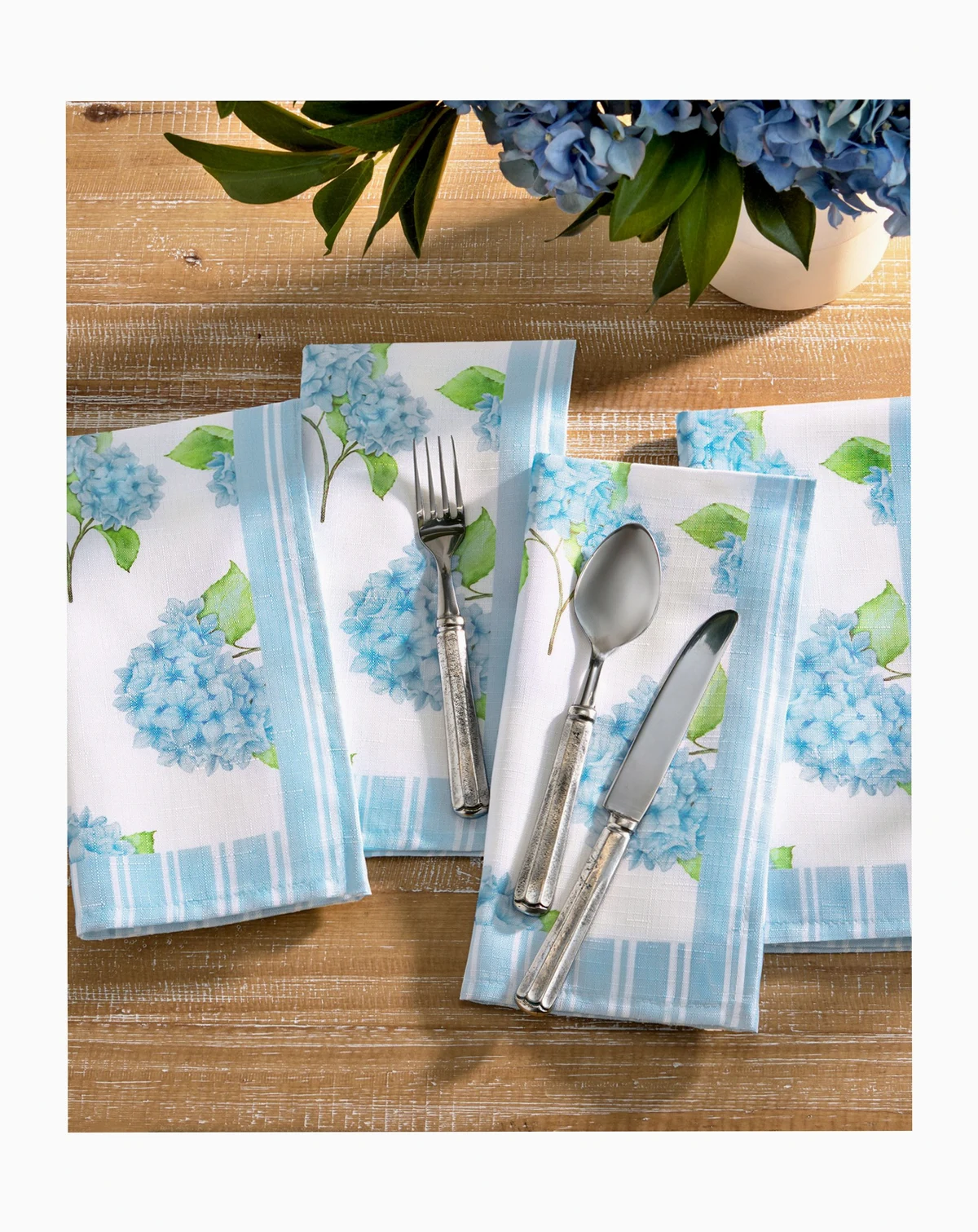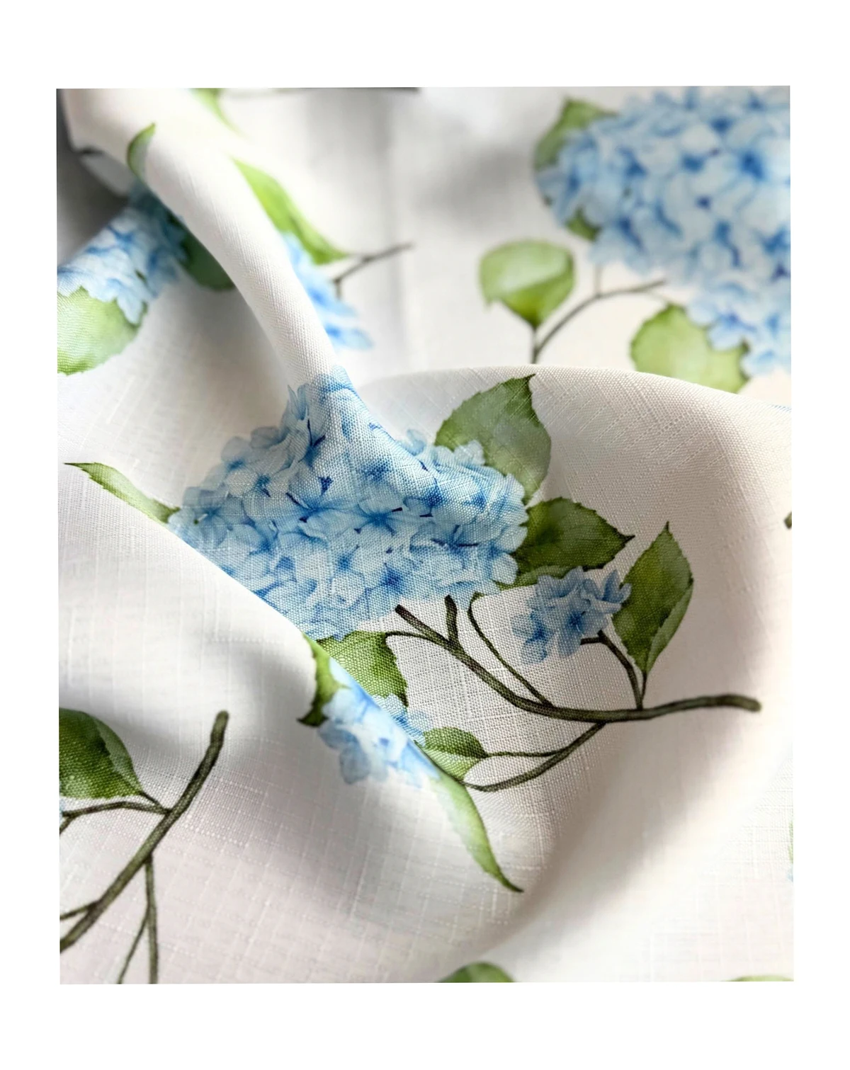 Capture the timeless beauty of coastal blooms with the Nantucket Garden Tablecloth. Featuring a watercolor inspired print of delicate clusters of hydrangeas in soft blue tones, this elegant tablecloth is framed by a subtle striped border that adds a touch of classic charm. Inspired by Nantucket cottages, coastal farmhouse, and beach house décor, it is sure to bring a serene and sophisticated atmosphere to your dining space. Perfect for everyday dining, summer entertainment, garden parties, or outdoor patio tables, this versatile tablecloth evokes the breezy elegance of coastal living and seaside retreats. Complete your seasonal table décor by pairing it with the coordinating Nantucket Garden napkins sold separately for a beautifully coordinated coastal tablescape.