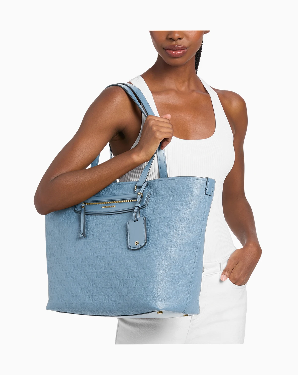 Experience effortless organization with this Michael Kors tote bag accented with gold-toned hardware for a chic finish. Two front and a back slip pocket provide quick-access storage, while its top handle drop makes it easy to carry throughout daily routines.