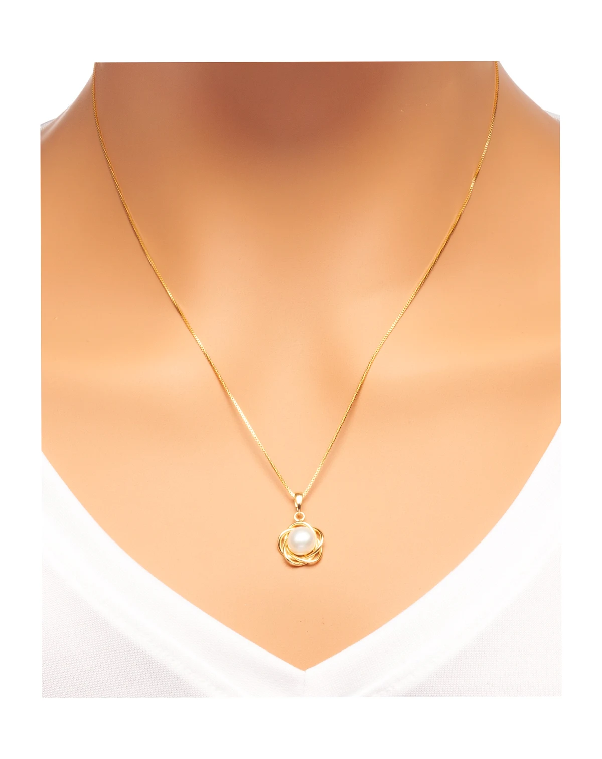 Glossy cultured freshwater pearls, sit atop polished petals in this elegant jewelry set, featuring a beautiful pendant necklace and matching stud earrings.