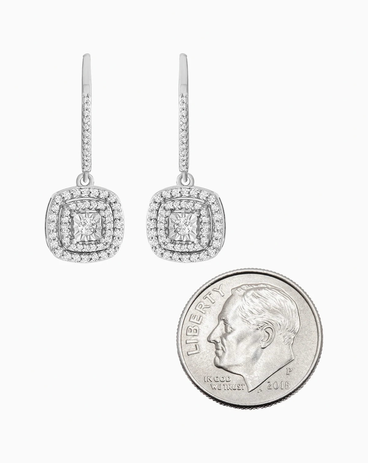 Diamond Halo Drop Earrings (1/2 ct. t.w.) in Sterling Silver, 14k Rose Gold Sterling Silver & 14k Gold Sterling Silver.