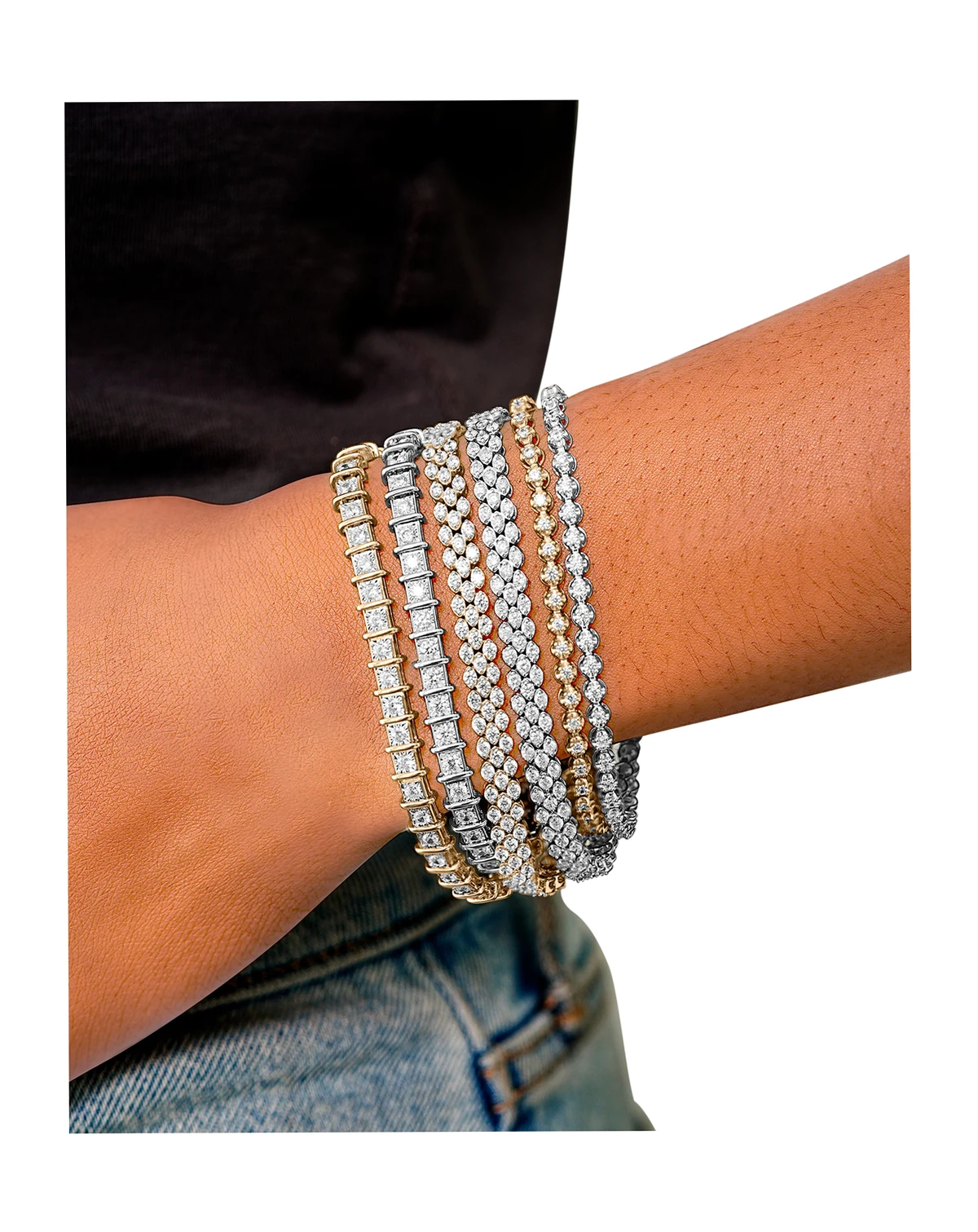 The jewelry dreams are made of a sparkling combination of modern glamour and chic design, this tennis bracelet lights up with a gorgeous row of round-cut diamonds.