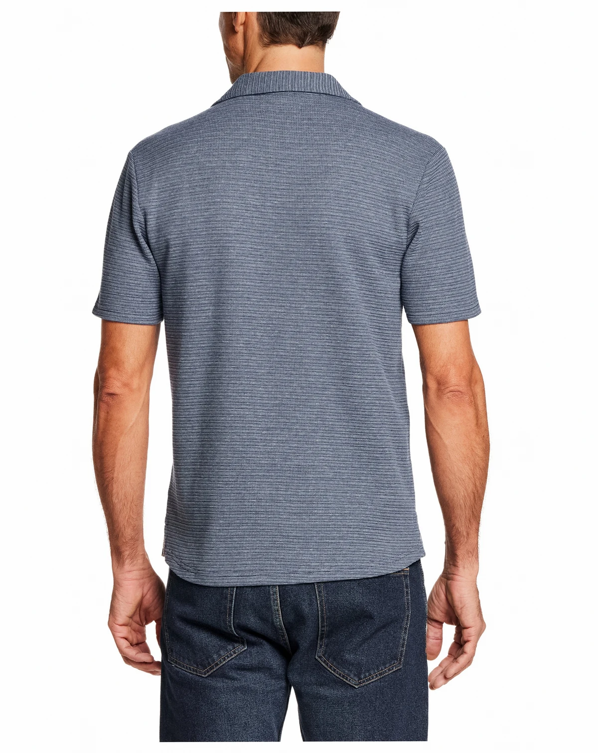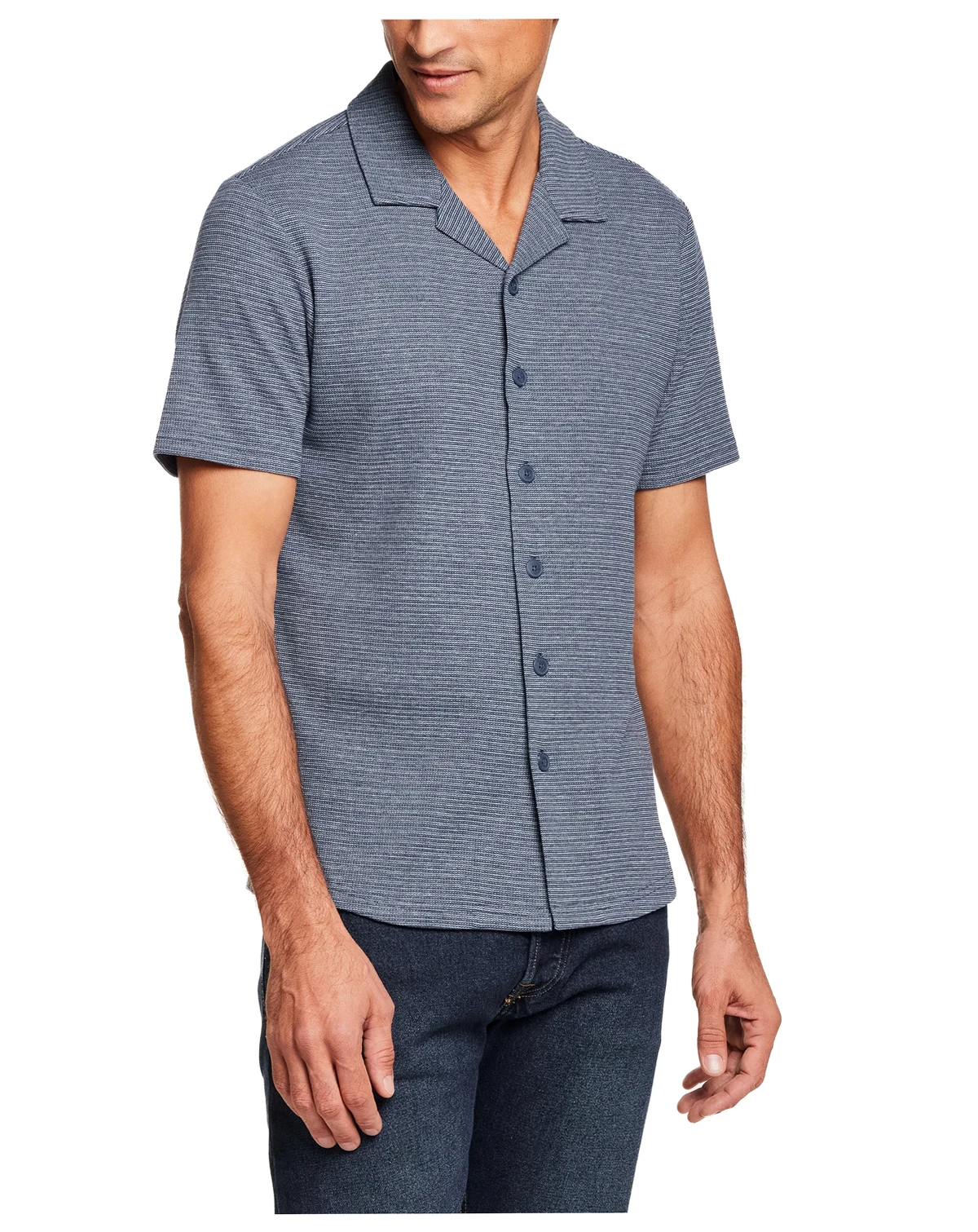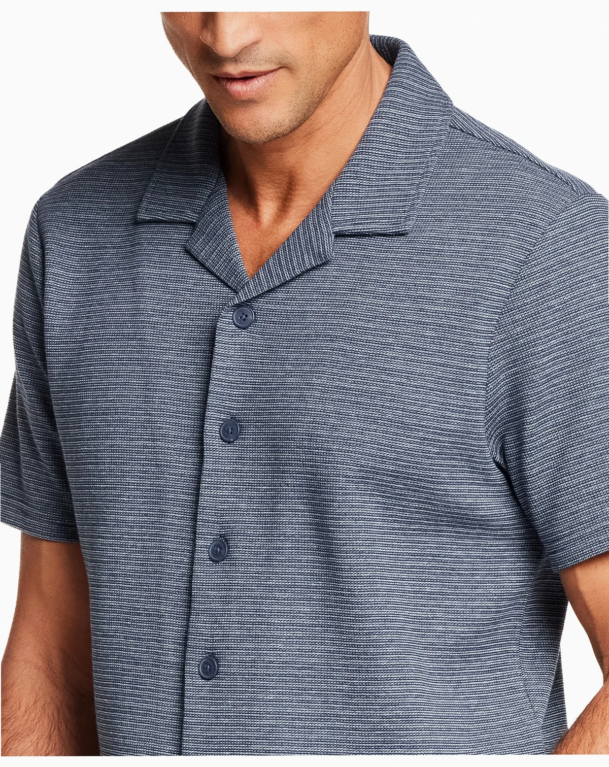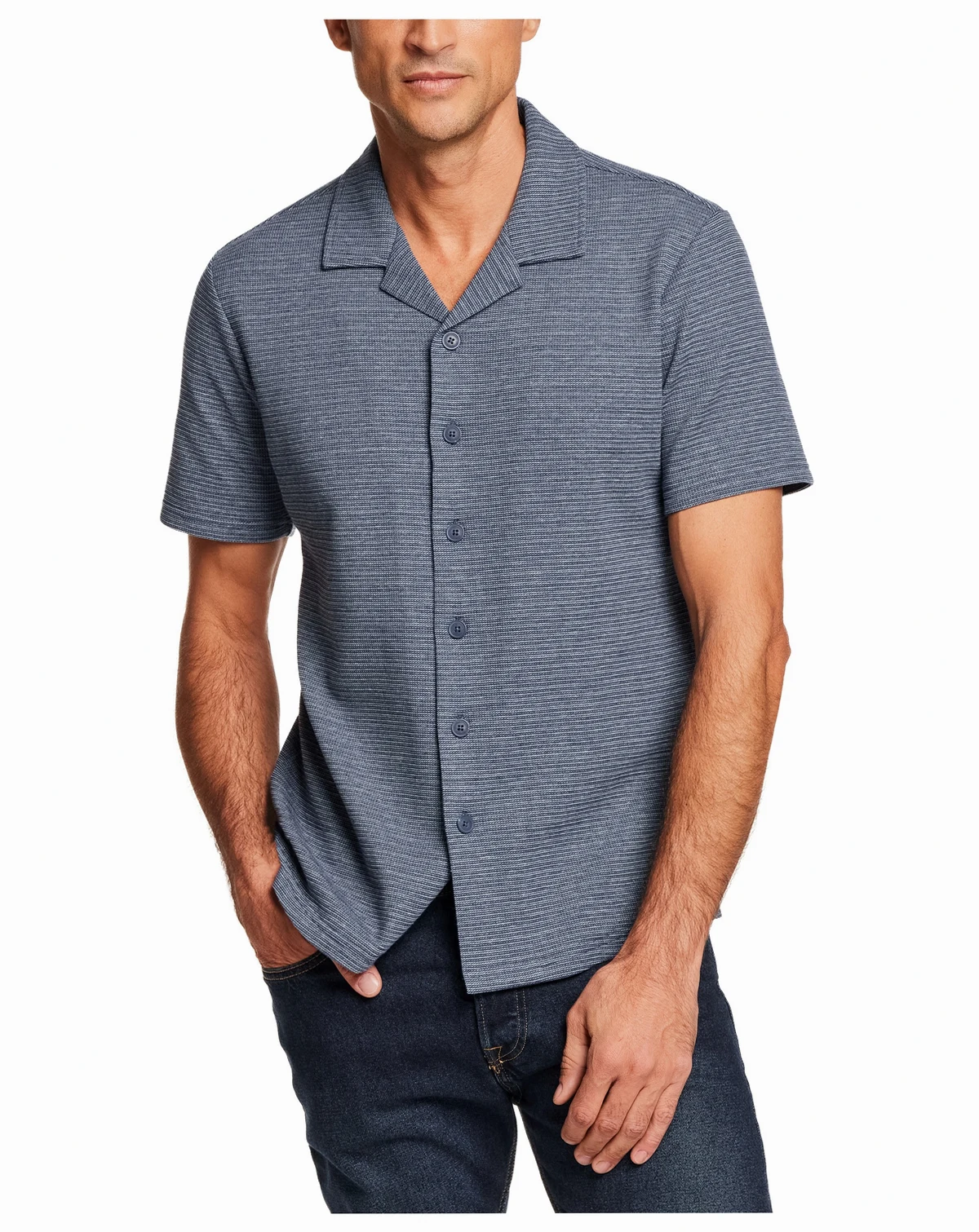 Feeling soft and comfortable, this Weatherproof Vintage variegated microstripe coatfront shirt is a perfect knit for warm summer months. A camp collar and button front provide relaxed, breezy style.