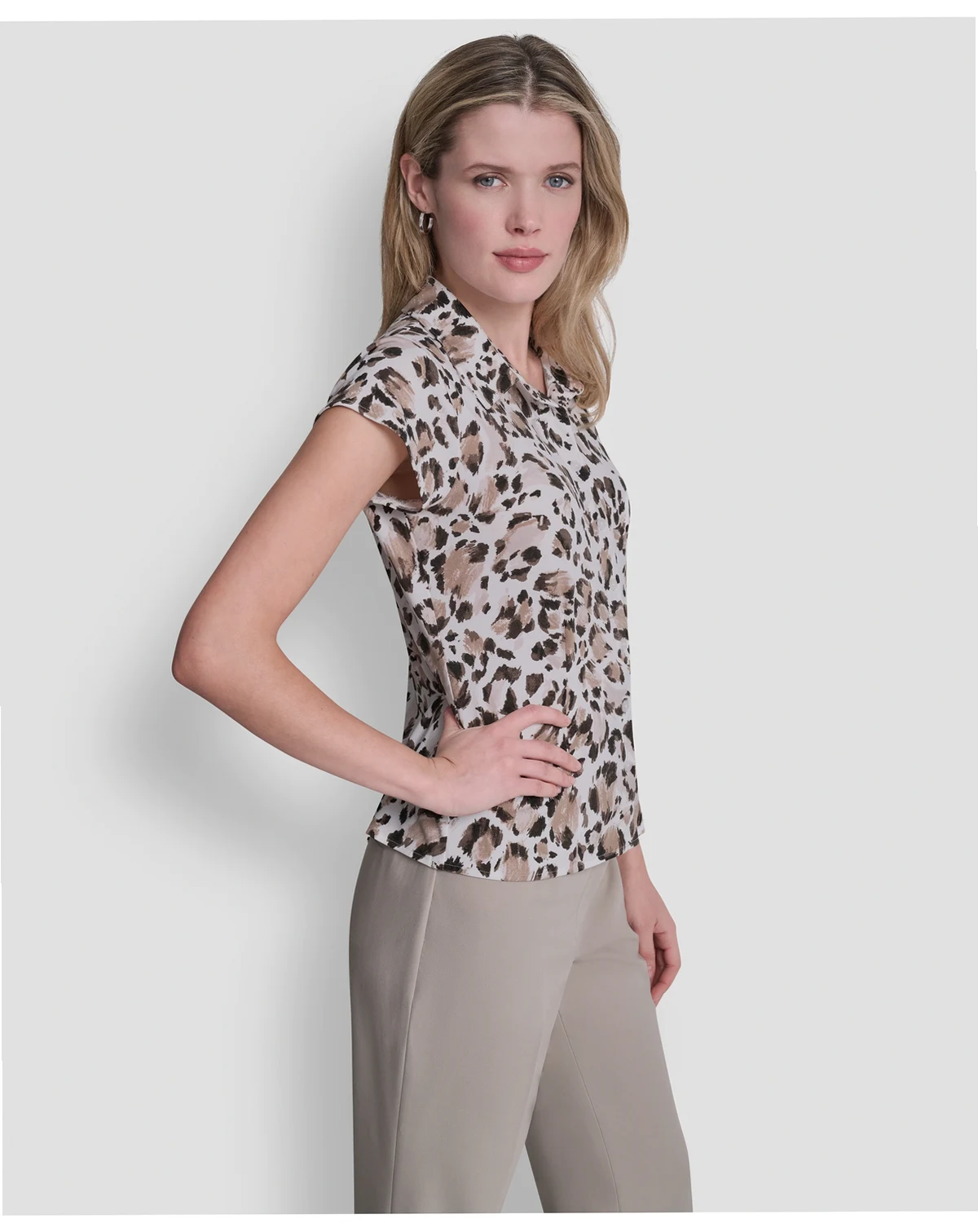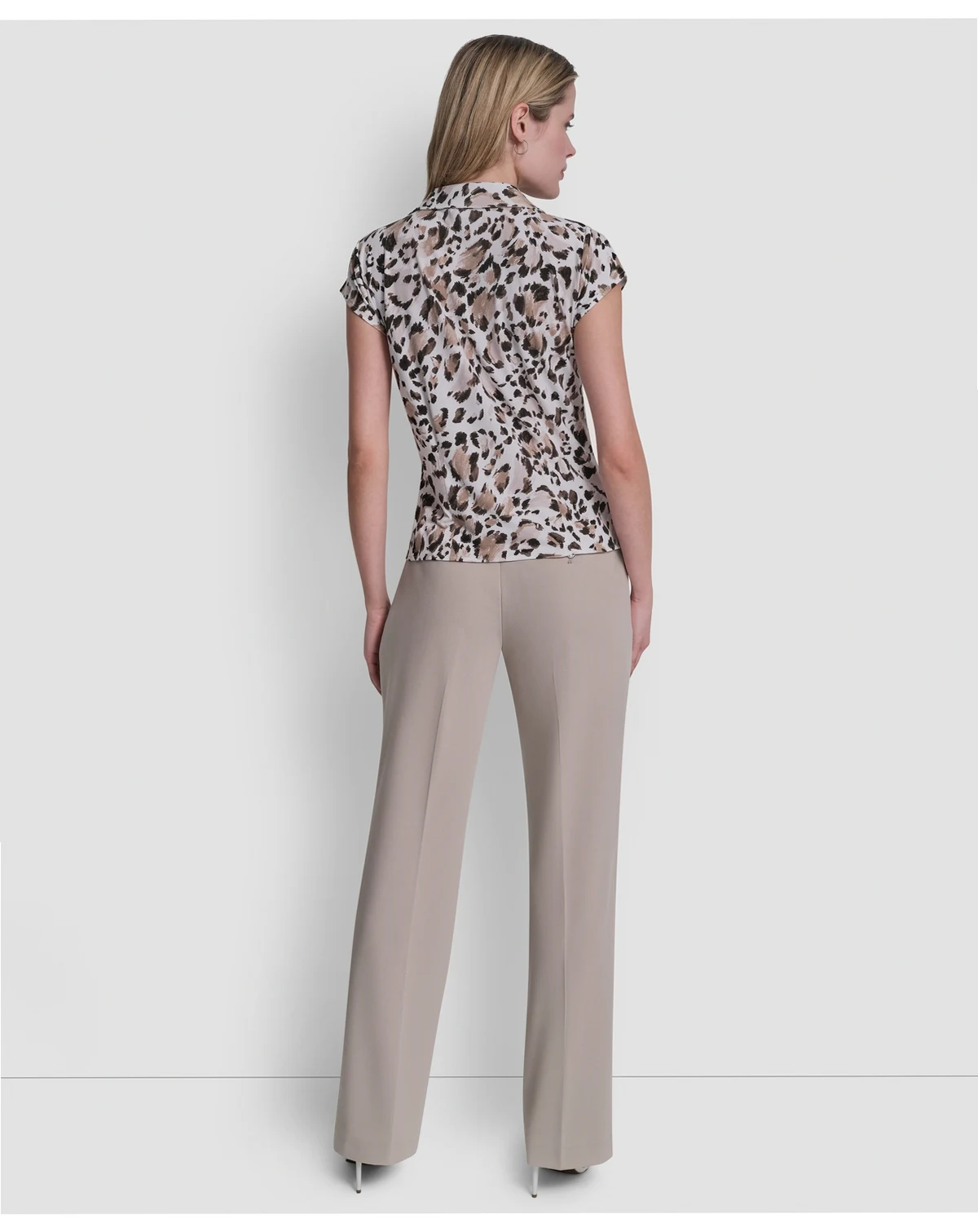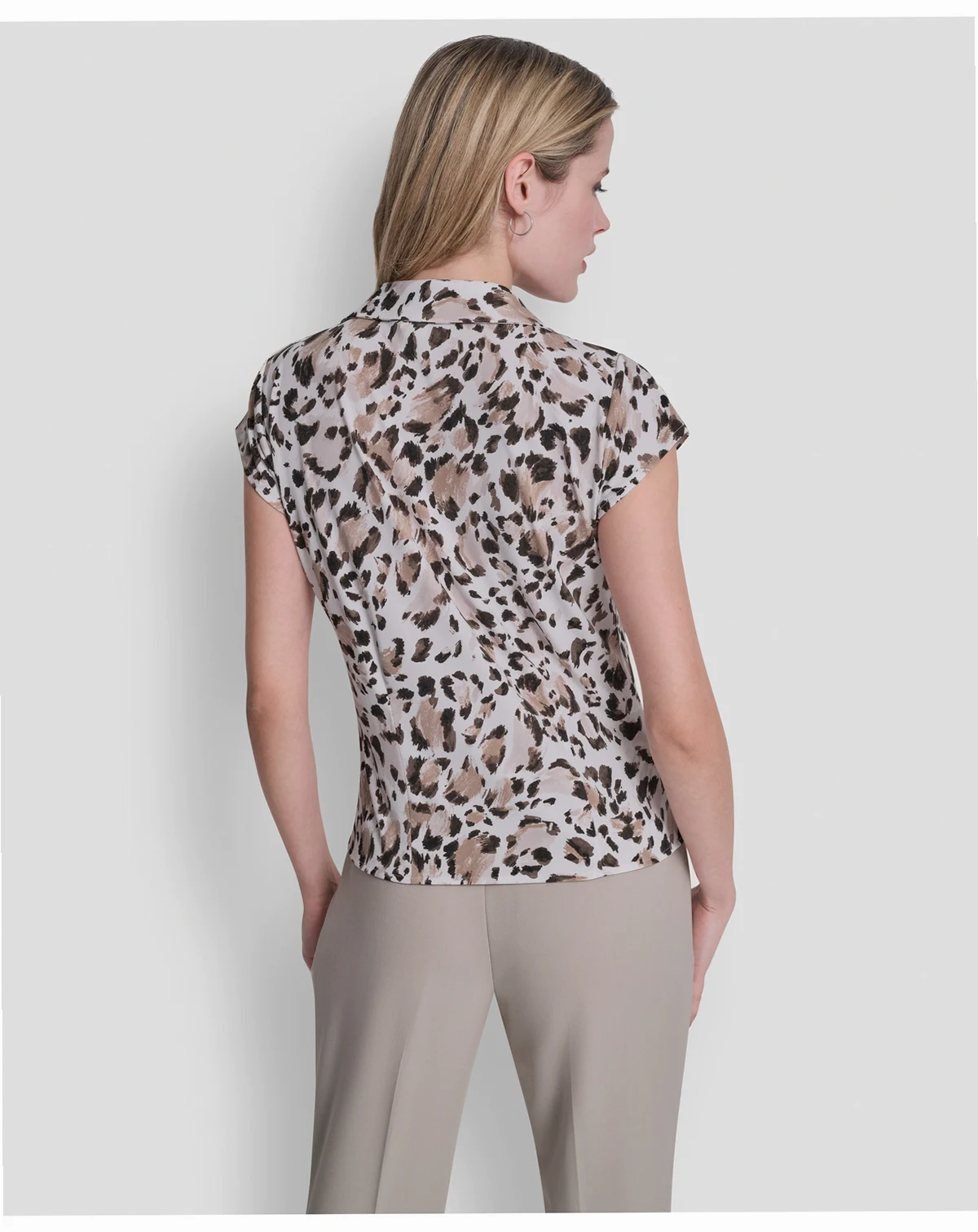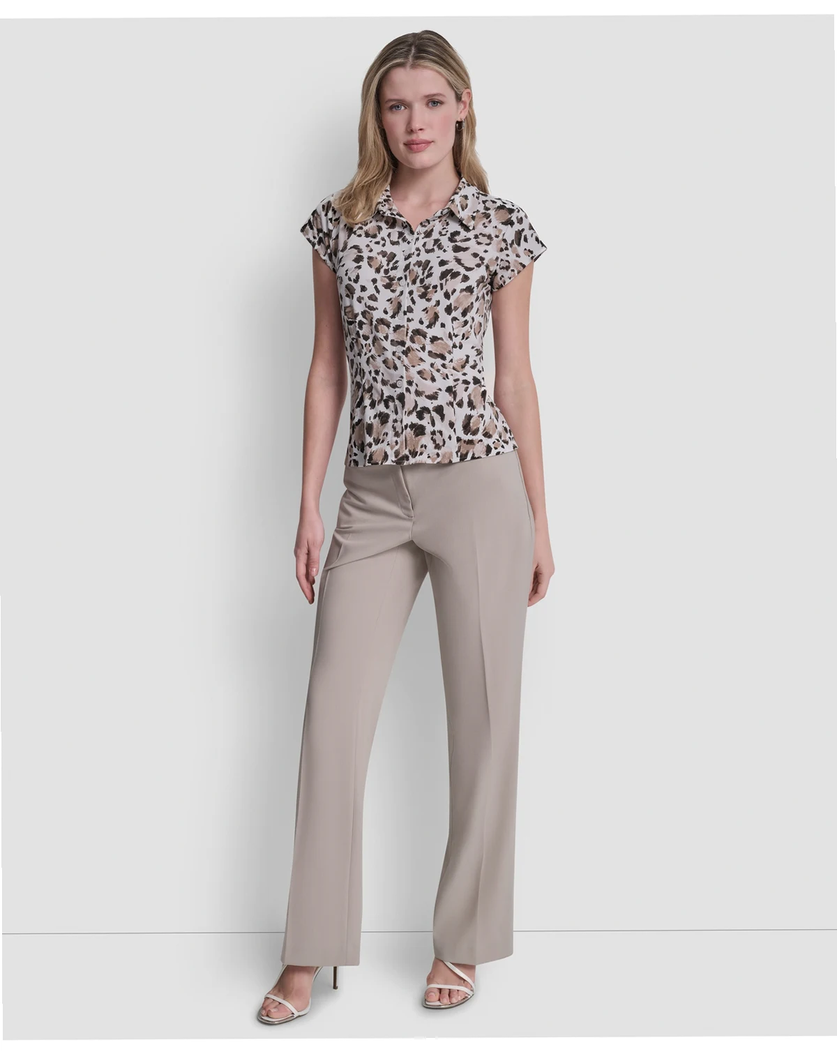 Classic tailoring meets modern ease in this DKNY knit button-down, inspired by traditional camp shirt styling. A collared neckline, short sleeves, and fitted silhouette create a polished, versatile profile.