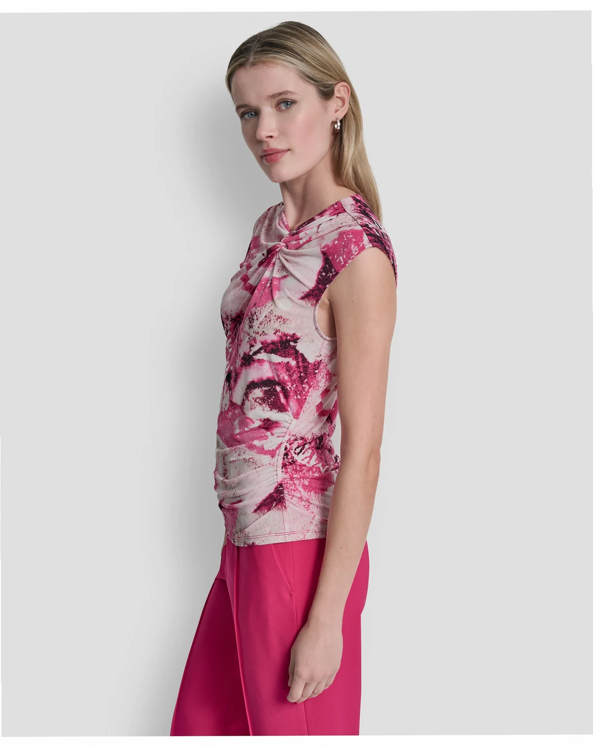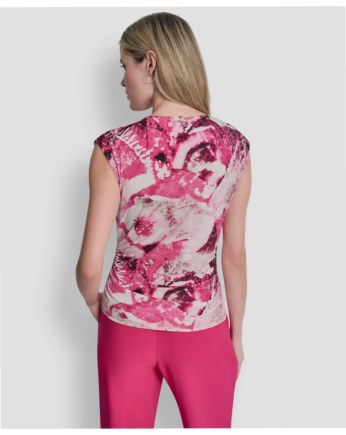 Embrace minimalist elegance in this DKNY top, designed with an asymmetric neckline and subtle side ruching. The cap sleeves and fluid drape offer a sleek, modern look that transitions from day to night.