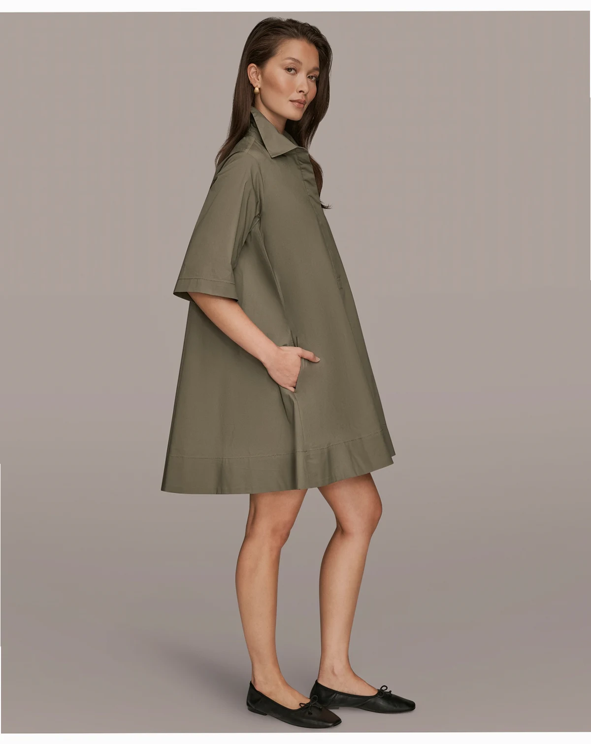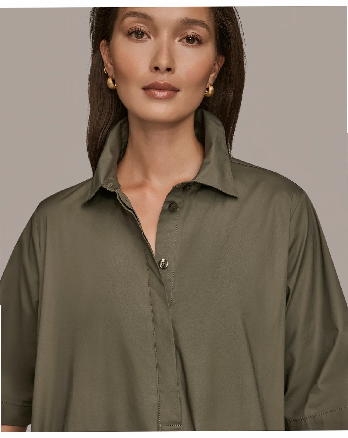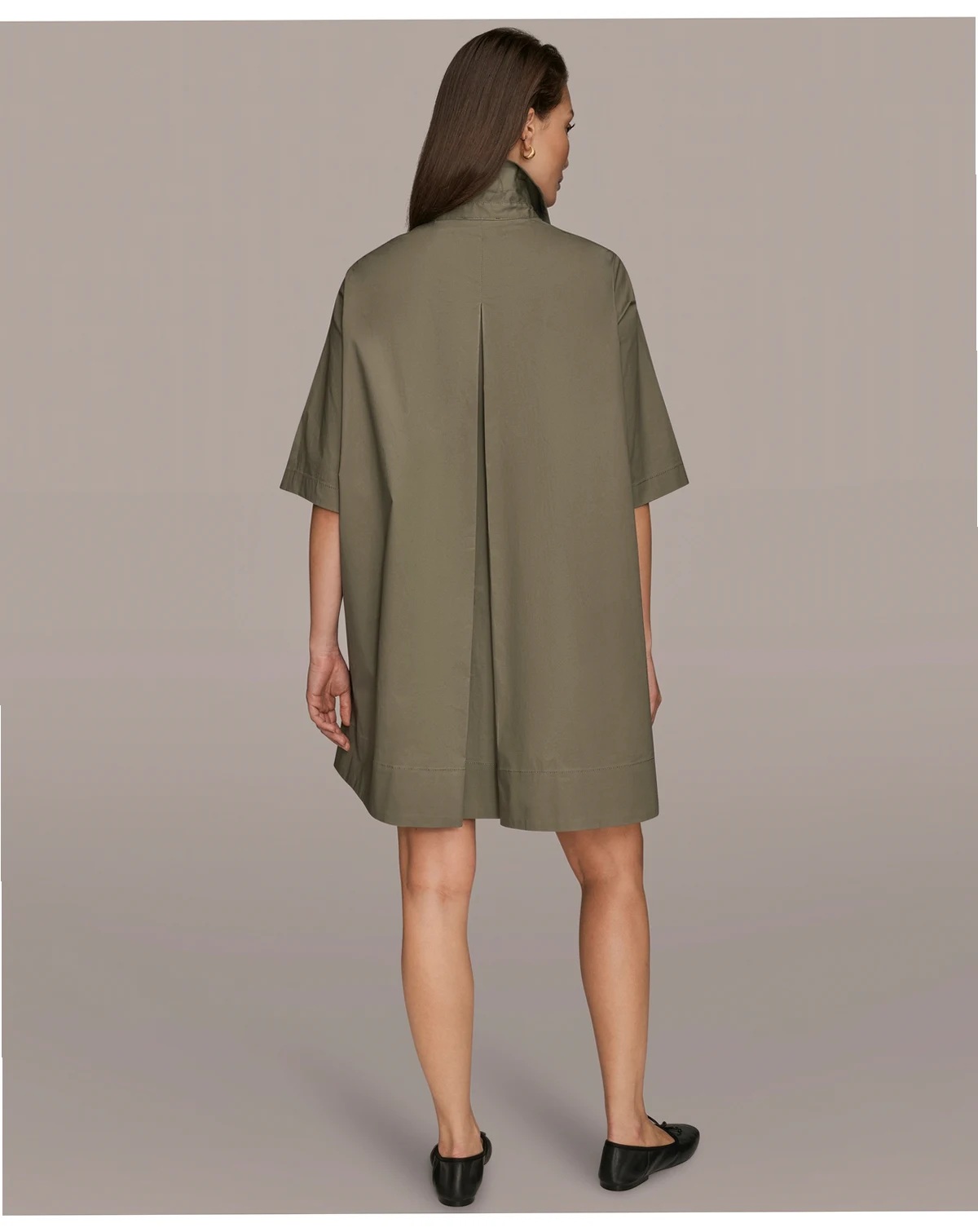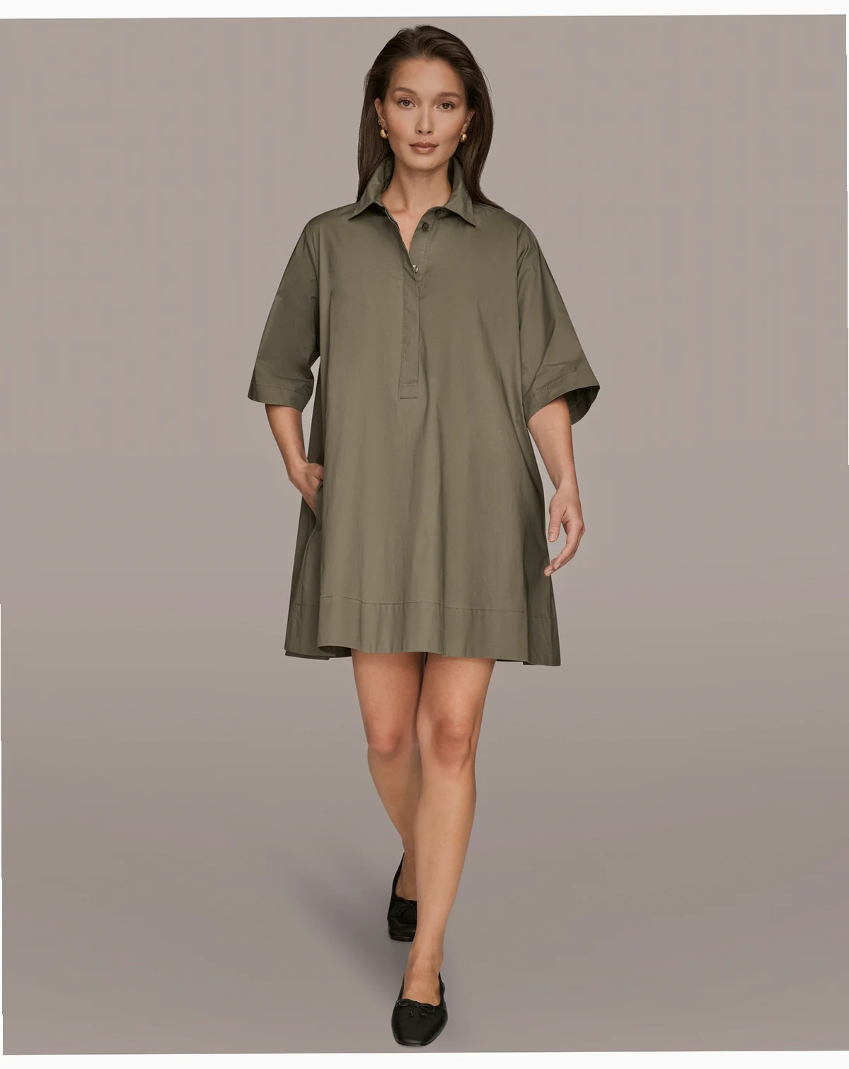 Effortless sophistication defines the Donna Karan New York Women's Stretch Poplin Elbow-Sleeve Hidden Placket Dress, crafted from lightweight poplin with a hidden button placket, elbow-length sleeves, on-seam pockets, and a tailored silhouette. Ideal for workdays, brunches, or weekend city trips.