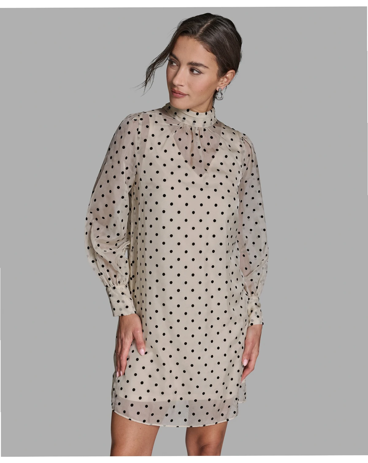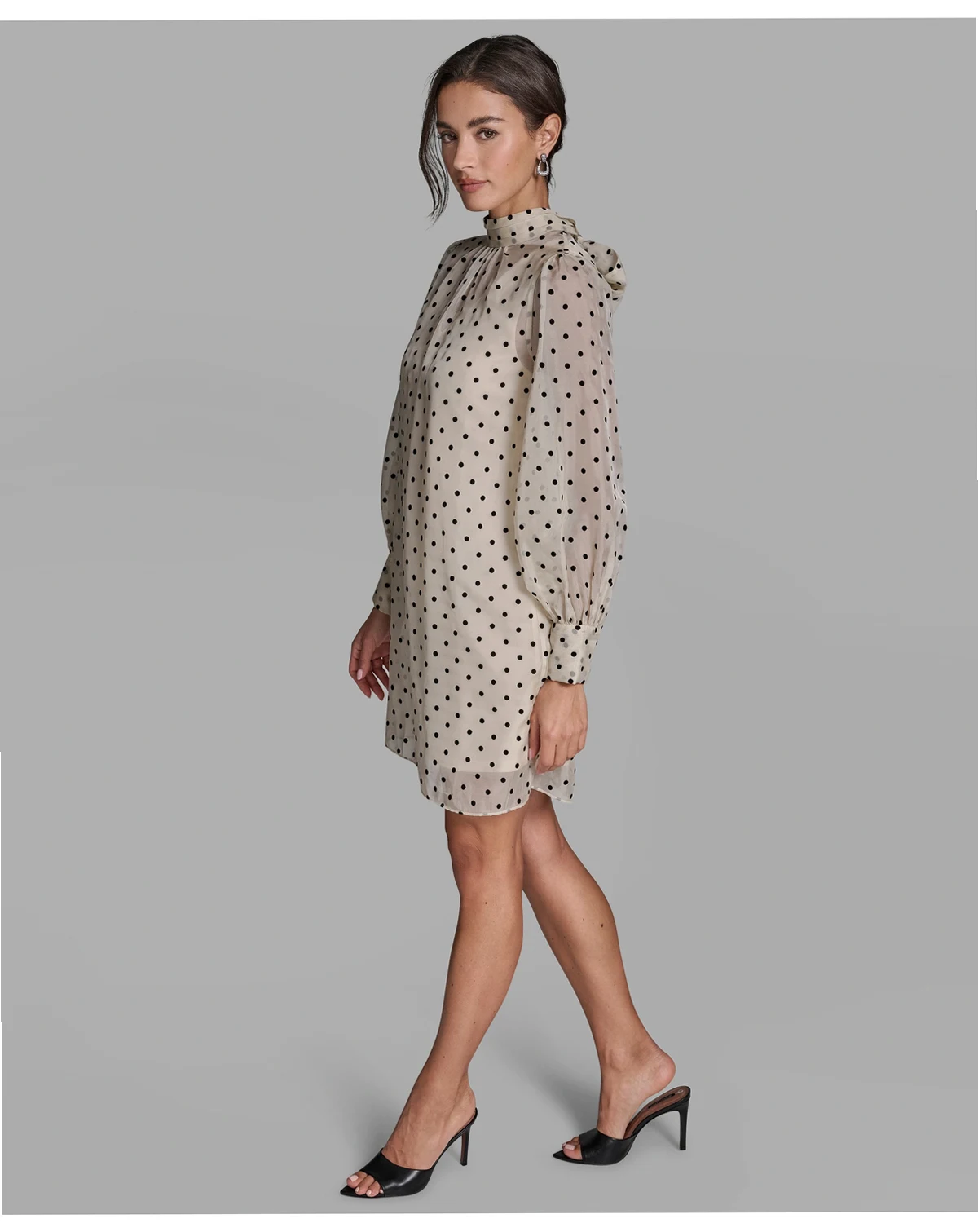 Experience timeless elegance with the BCBG Organza Dot Mock Neck Two-Piece Shift Dress. This designer dress, crafted from luxurious organza, offers a sophisticated silhouette perfect for formal occasions. The high neck adds a touch of refinement, while the shift style ensures comfort and effortless chic. Ideal for cocktail parties or holiday gatherings, this women's dress embodies premium fashion.