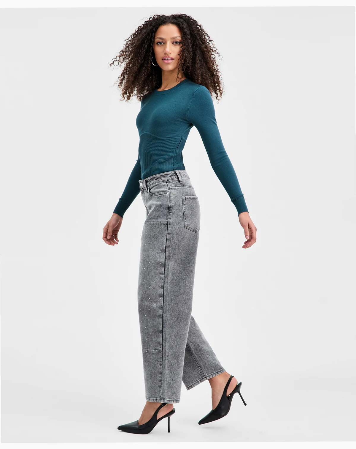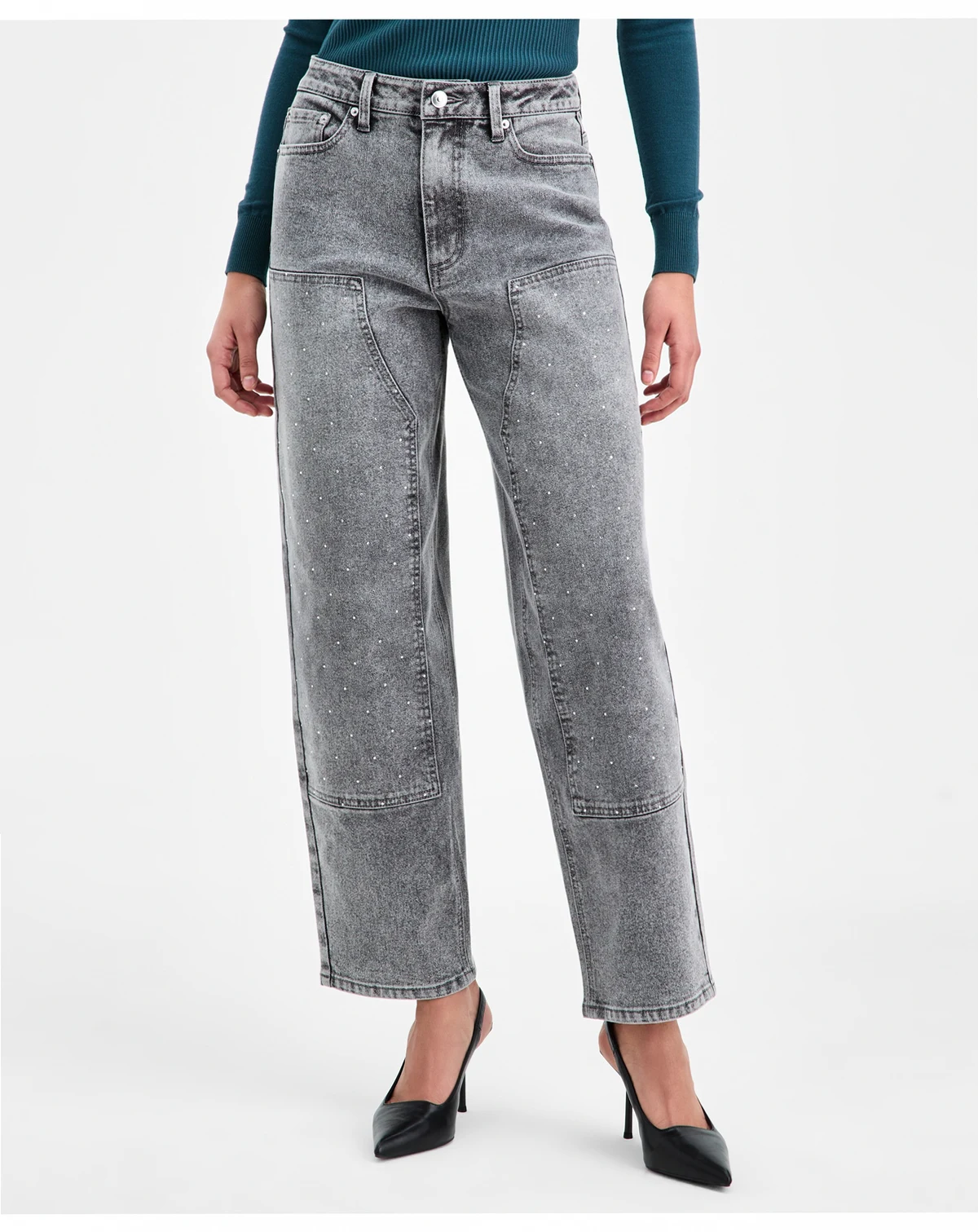 Women's Rhinestone Embellished Barrel-Leg Jeans, Macy's Exclusive