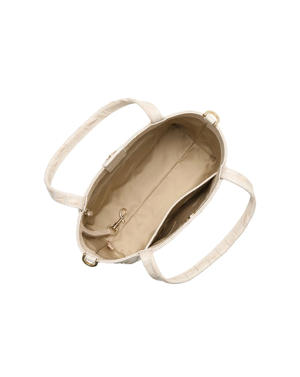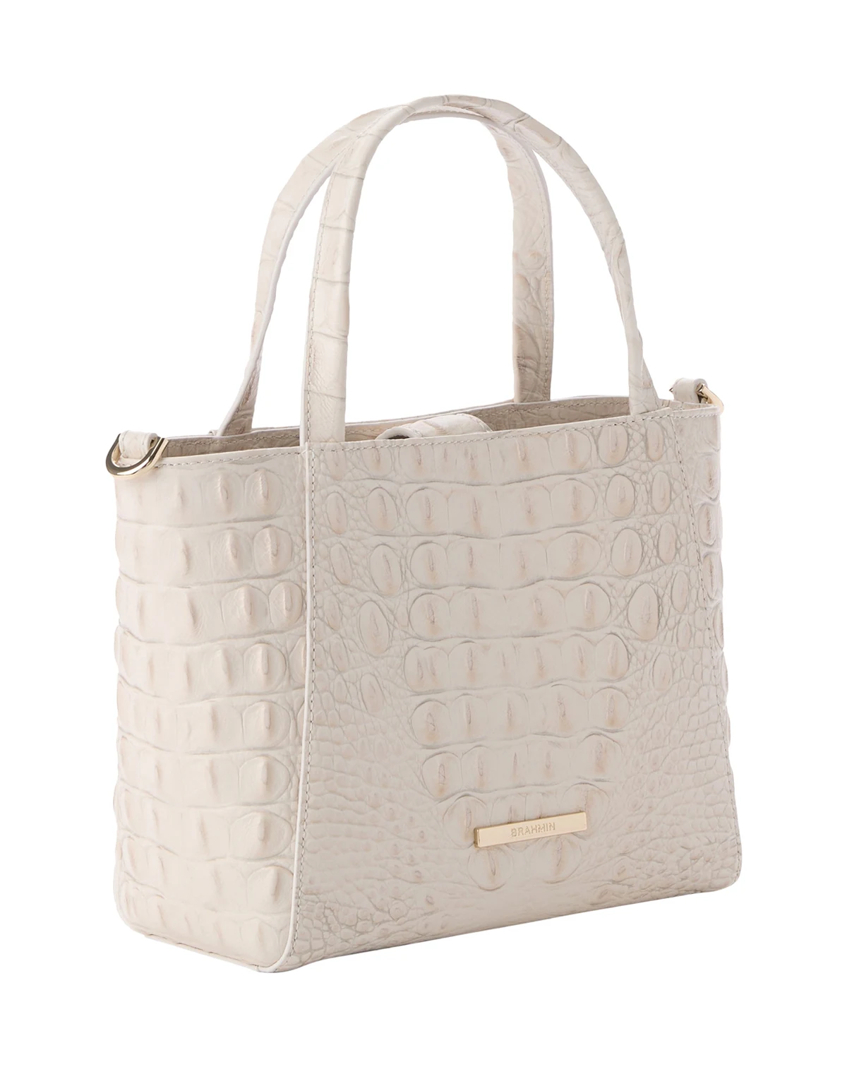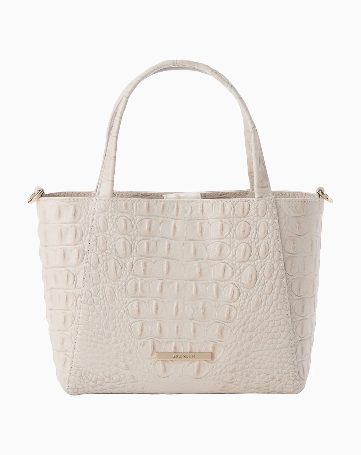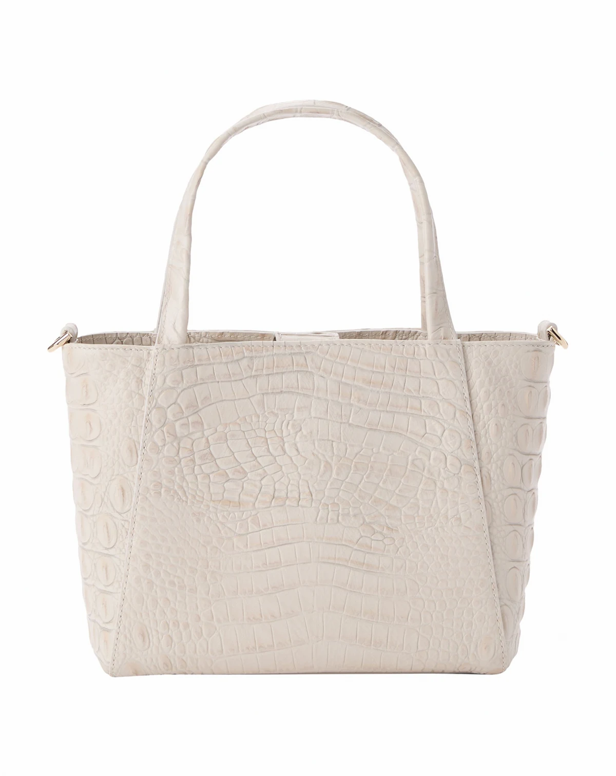 Providing versatile functionality, this Small Mona tote from Brahmin converts to a crossbody for adaptable wear. The compact silhouette and open top offer lightweight luxury with easy access to your organized essentials.