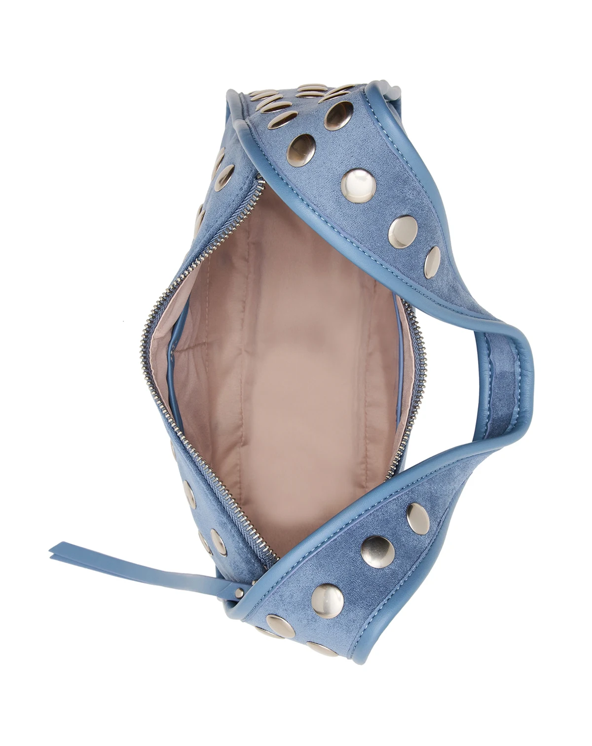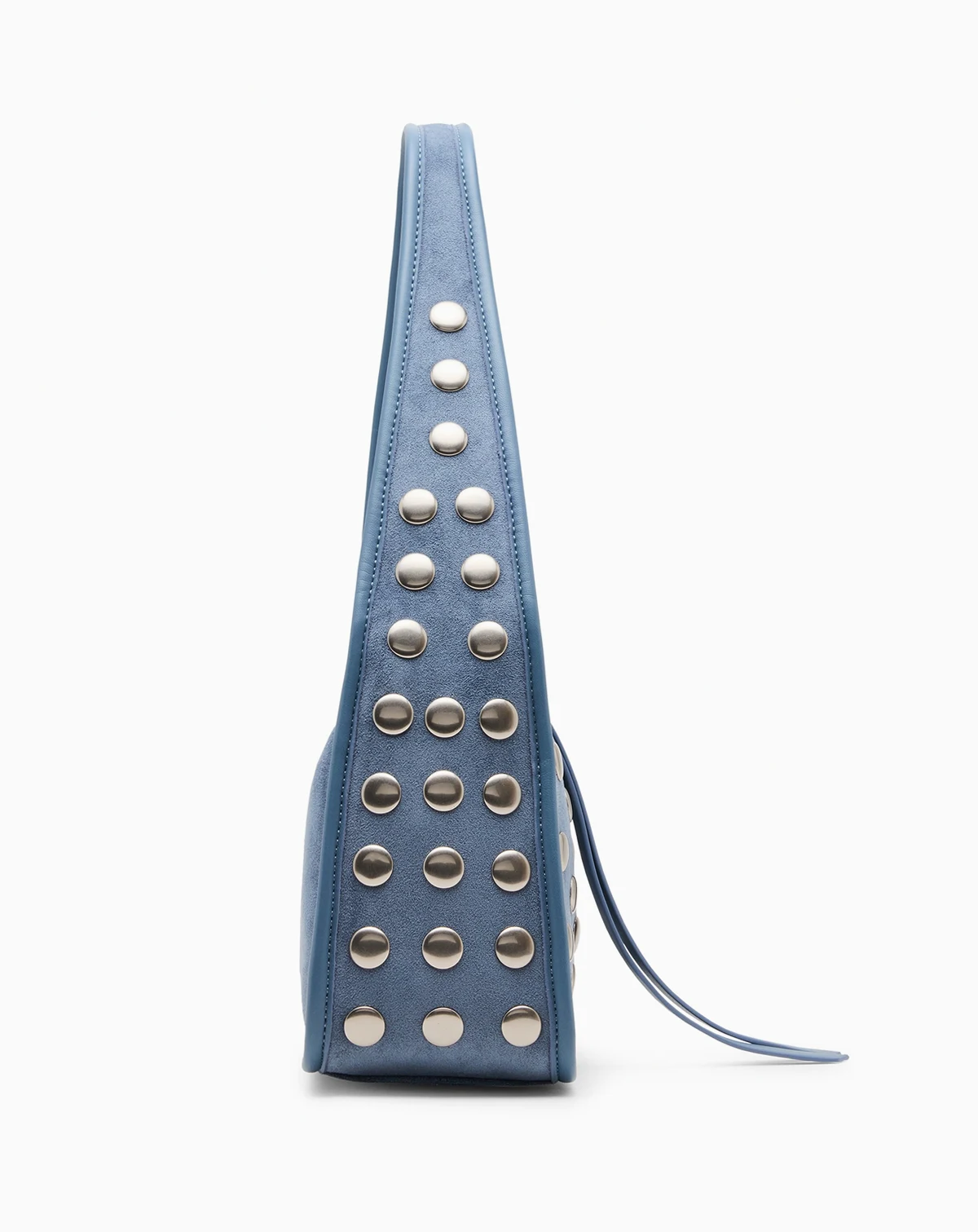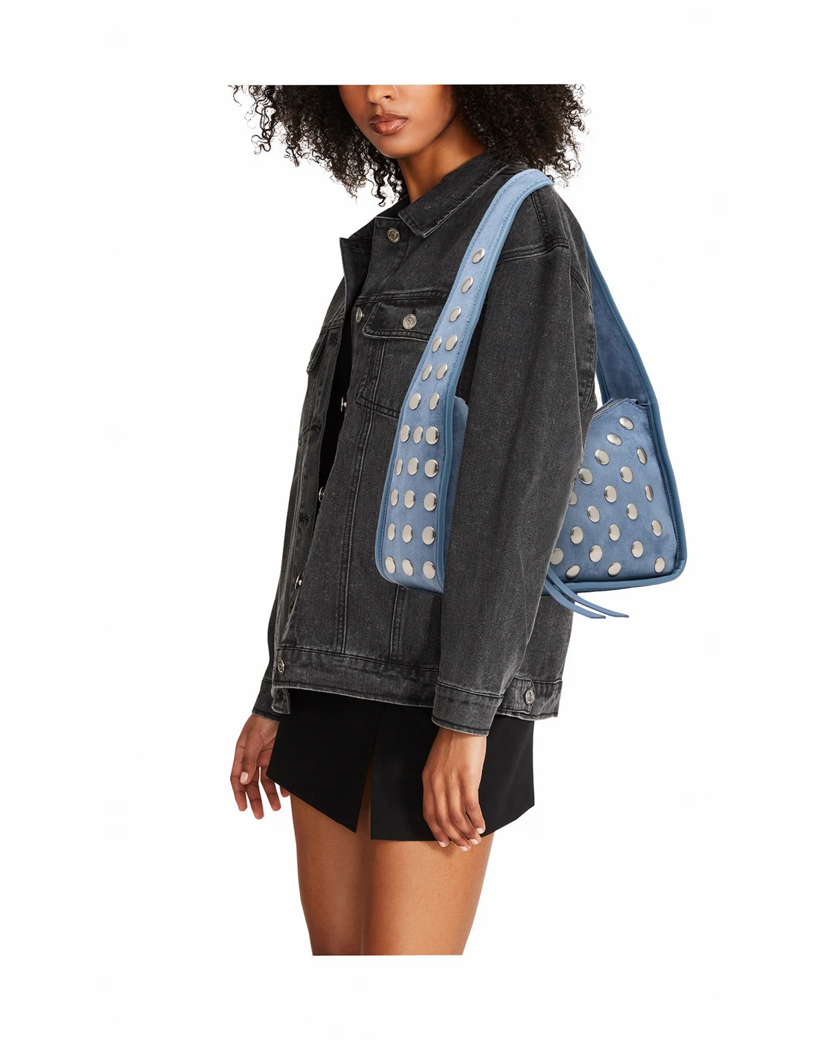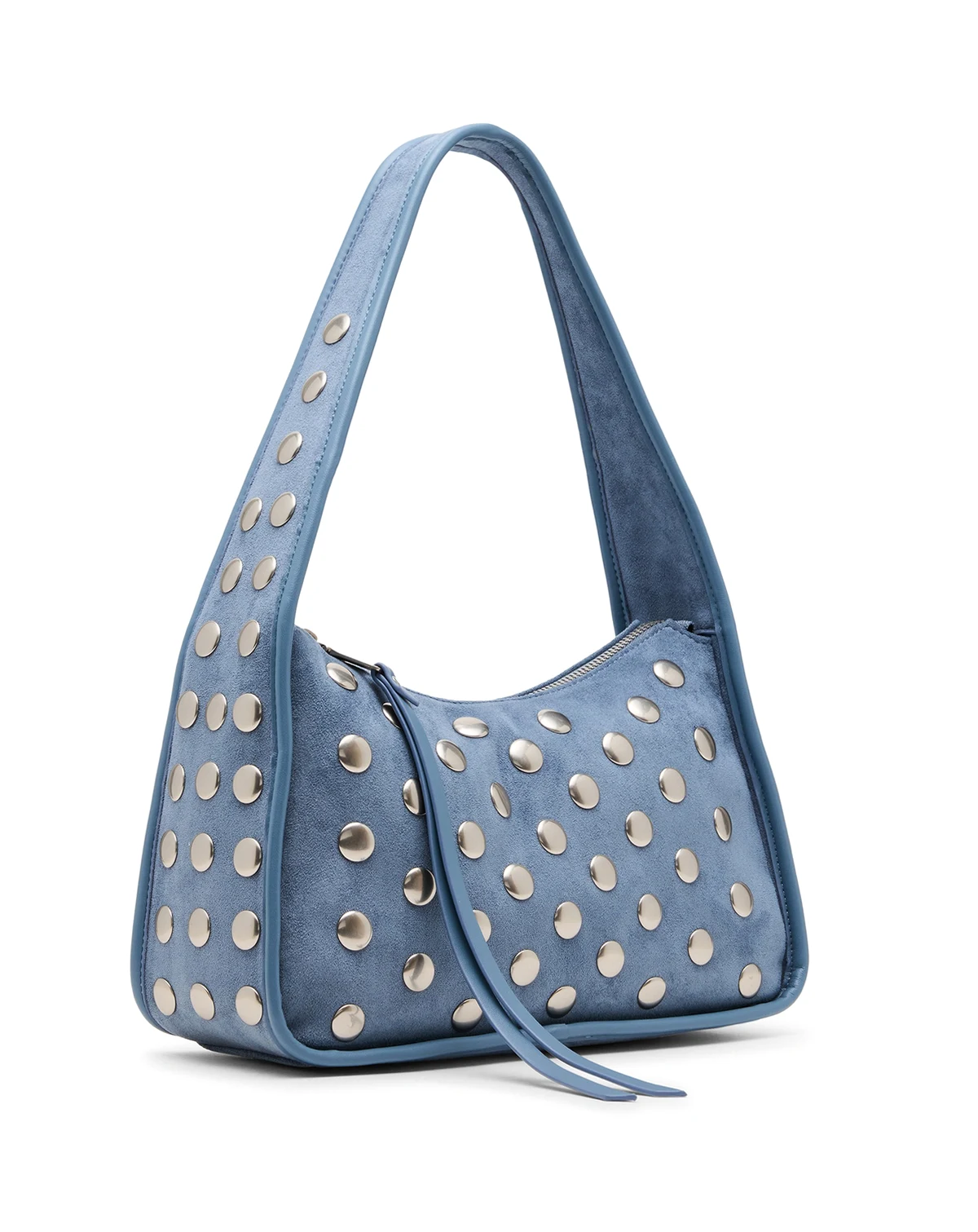 The Bcheyann bag is a dome-studded hobo shoulder bag designed for both style and functionality. Featuring a secure top-zipper closure, it ensures your essentials stay safely inside. The interior includes a convenient pouch on the back wall, providing organized storage for smaller items. This bag effortlessly combines edgy design elements with practical details, making it a versatile choice for everyday use.