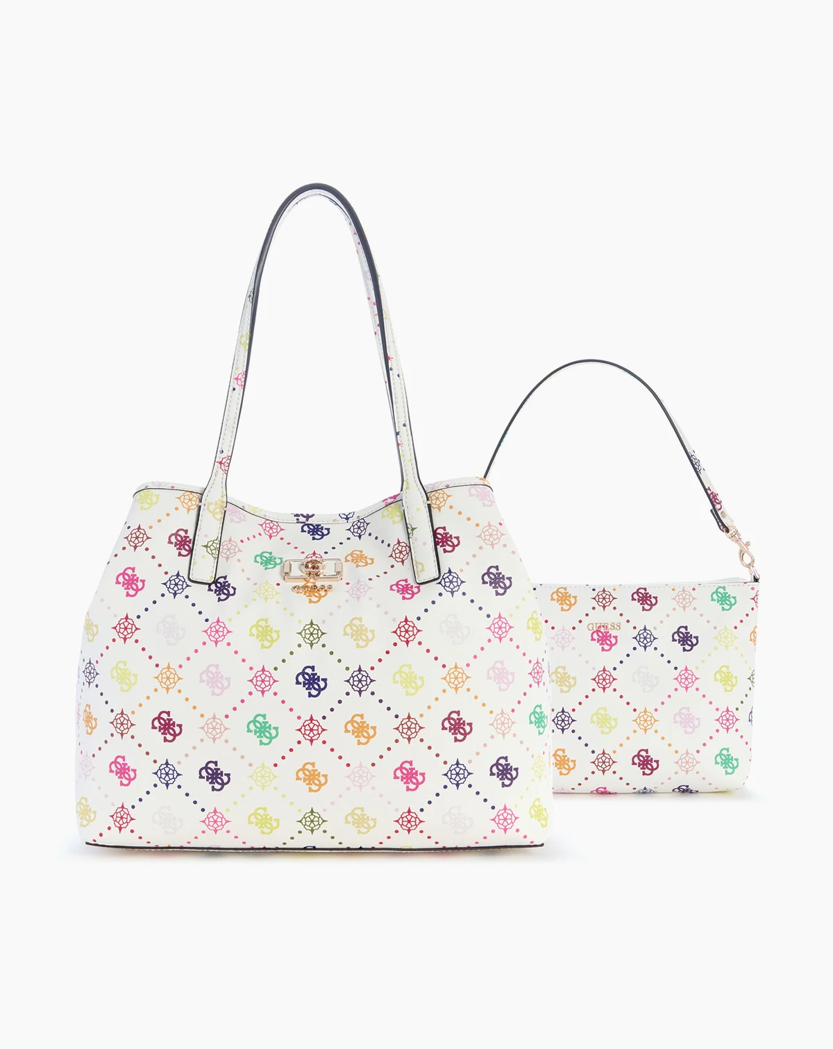 Transition from work to weekend with this GUESS Emelie tote bag, featuring a pull-out pouch for extra organization. Dual shoulder straps provide comfortable carrying for your larger items.