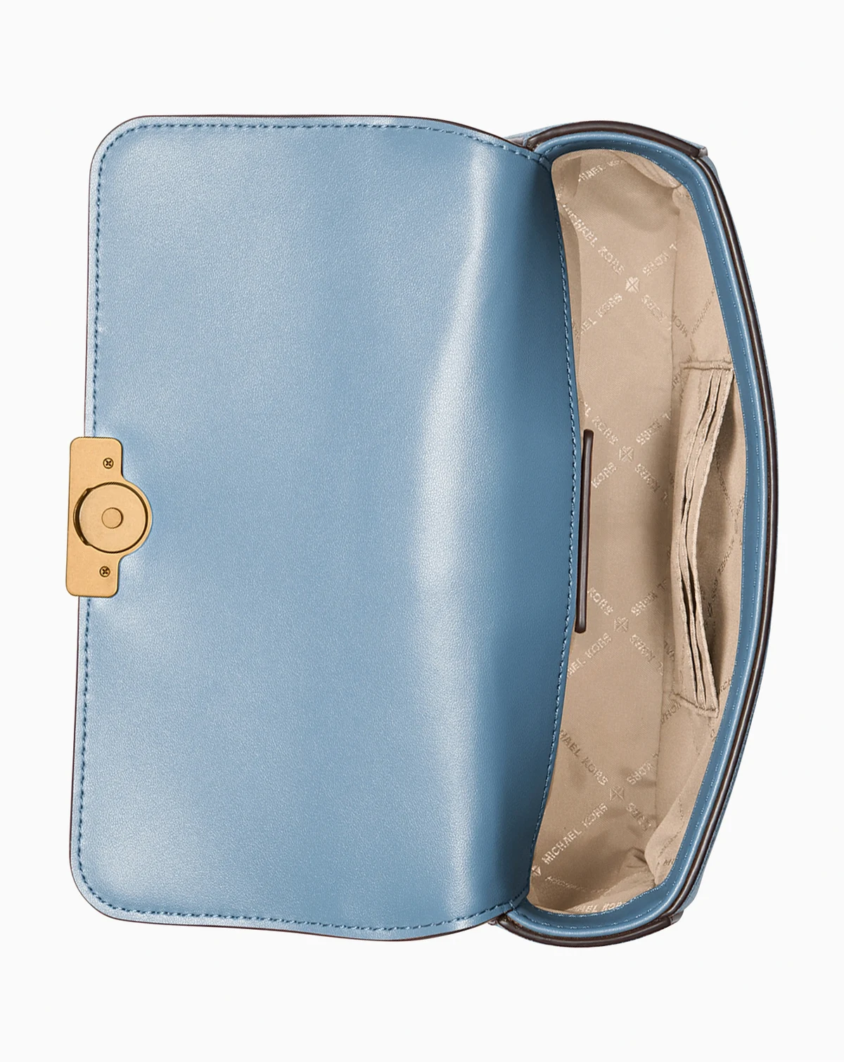 Featuring a flap magnetic snap closure and multiple credit card slots, this Michael Kors handbag is compact yet spacious enough to accommodate your essentials. An adjustable strap allows for comfortable crossbody or shoulder carry.