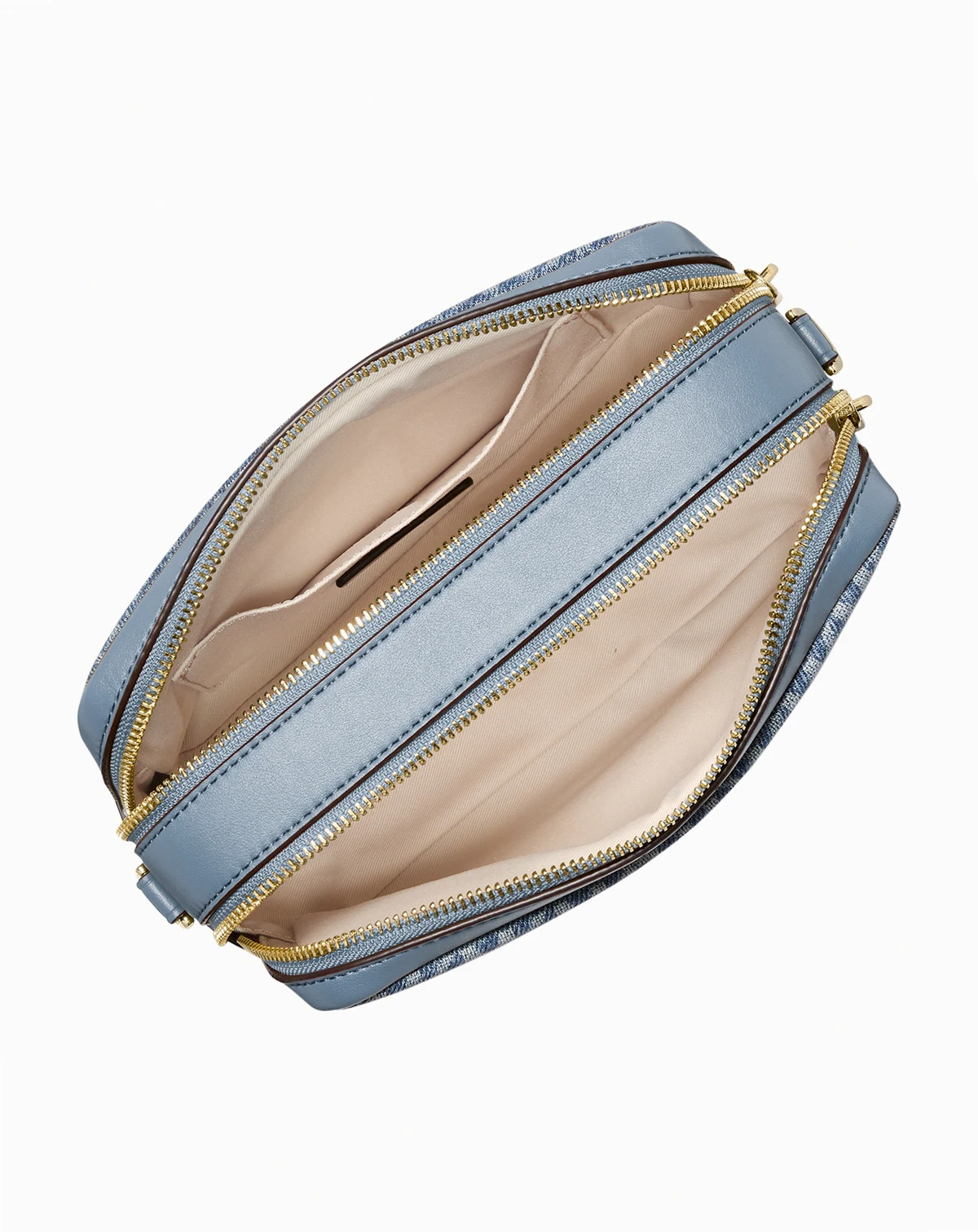 Combining a chain strap with a convertible crossbody design, this Michael Kors handbag presents a modern camera bag style. Dual zip closures and a compact shape offer secure, accessible storage.