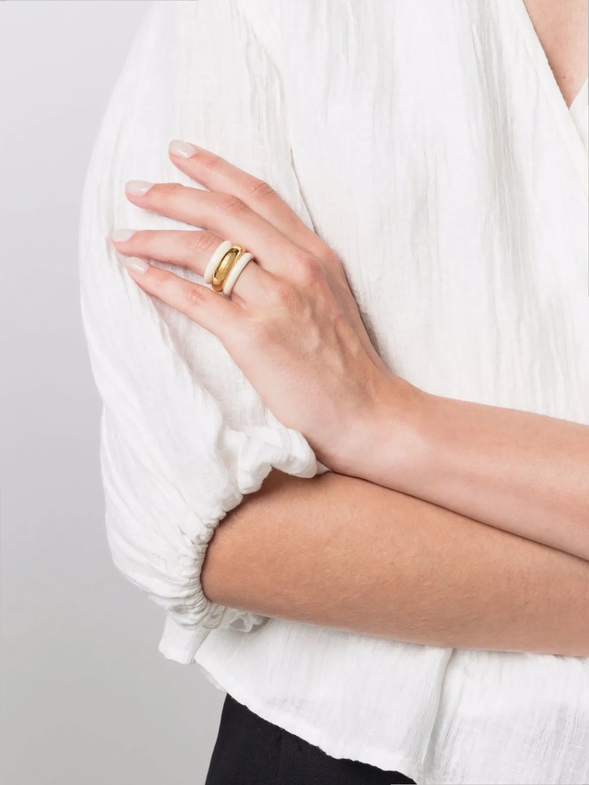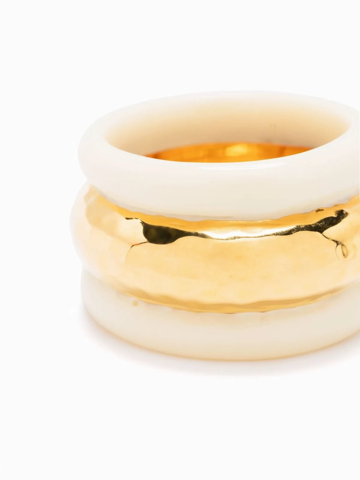 white/gold resin/plated brass two-tone design hand-hammered effect plated finish