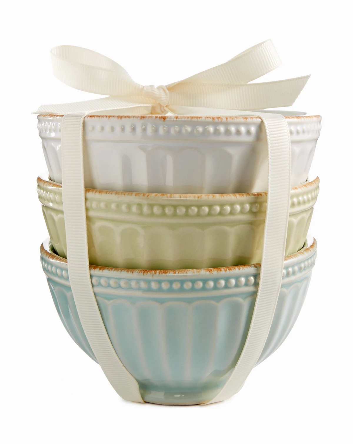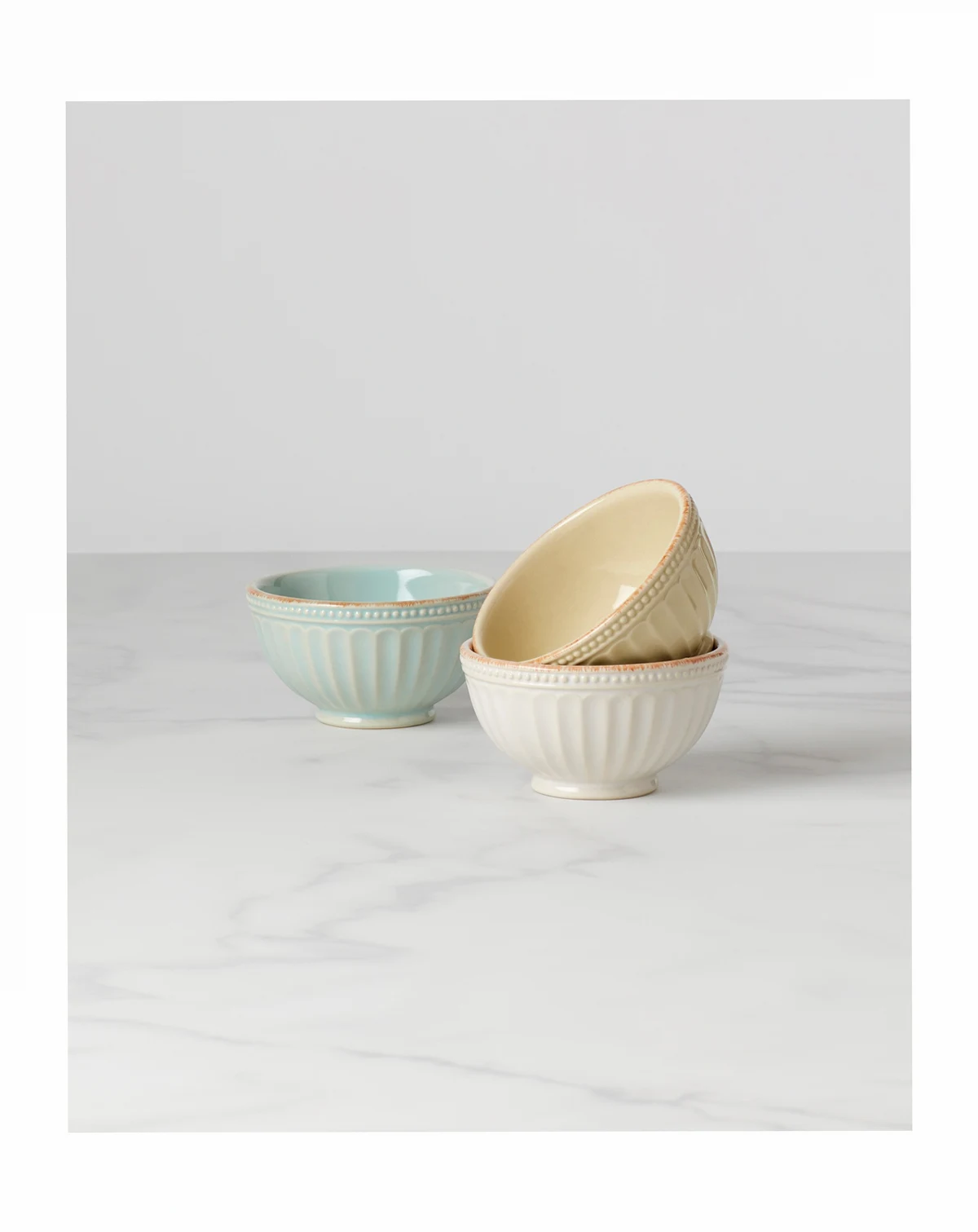 Light, sophisticated tones combine with a bead and fluting design in this 3-piece mini bowls set from the French Perle Everything Collection by Lenox for an elegant addition to your table in durable stoneware.