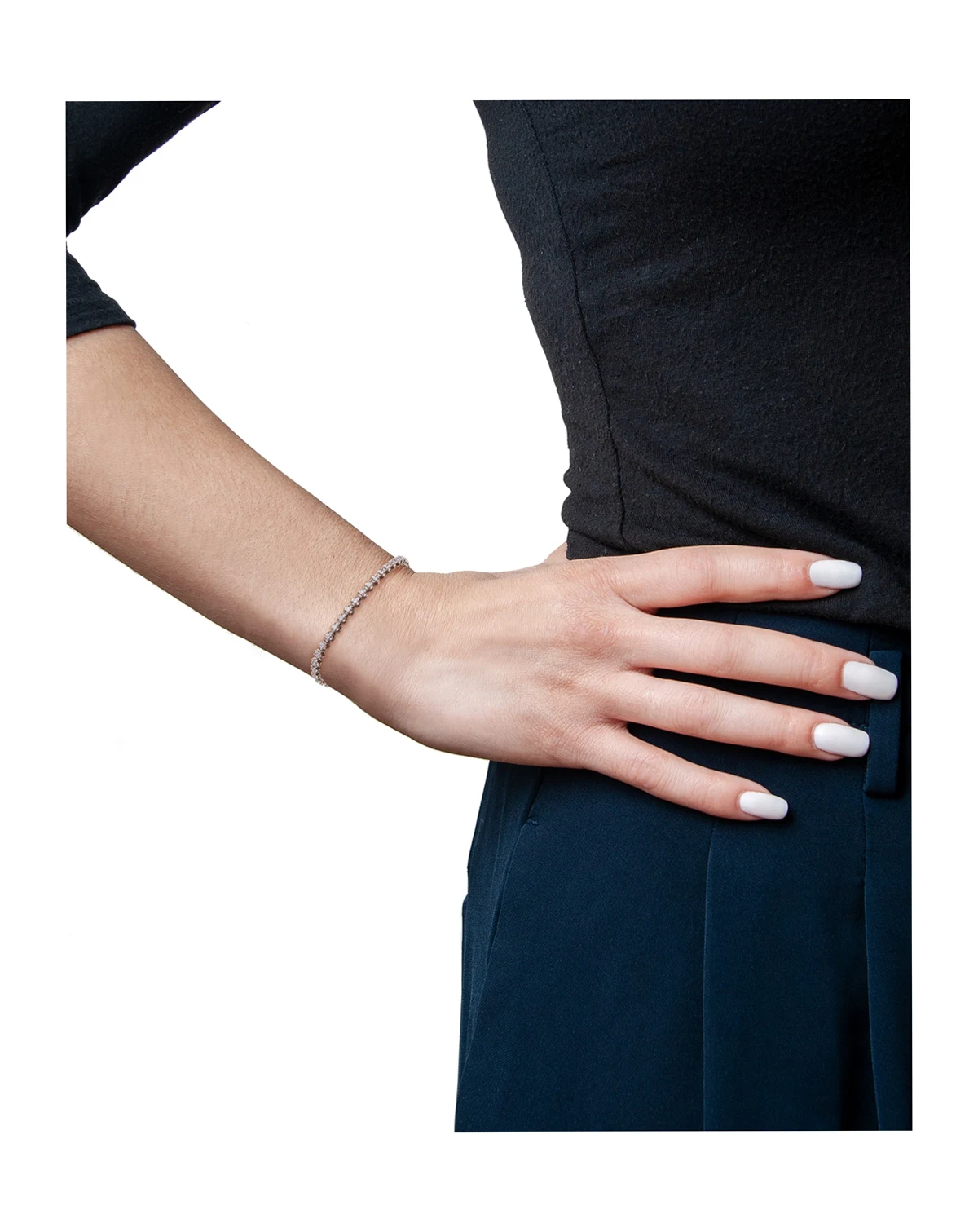 The jewelry dreams are made of a sparkling combination of modern glamour and chic design, this tennis bracelet lights up with a gorgeous row of round-cut diamonds.