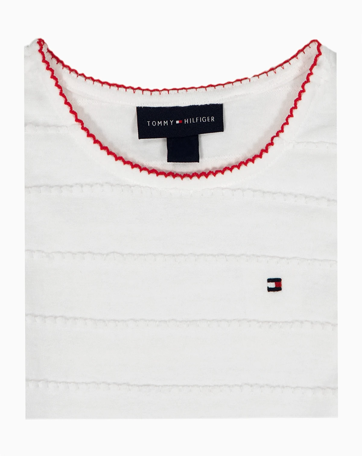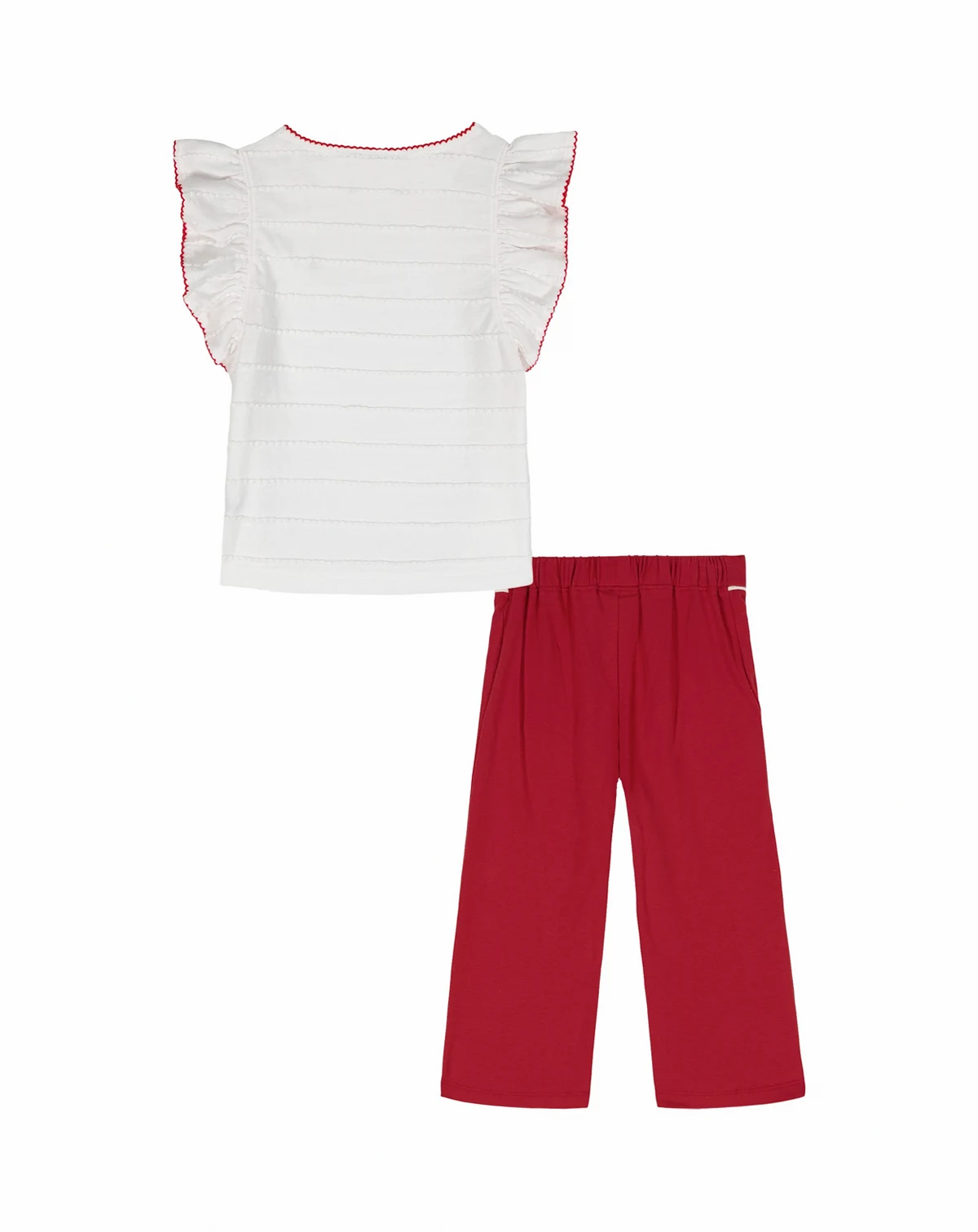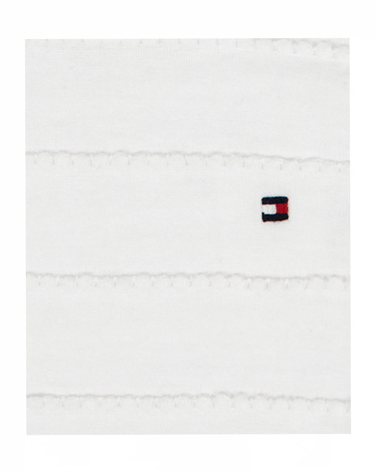 Bringing relaxed sophistication to casual dressing, this Tommy Hilfiger set pairs a striped jersey top detailed with contrast crochet edging for a refined accent. Stretch wide-leg pants with a piping trim provide flexible wear and a polished silhouette.