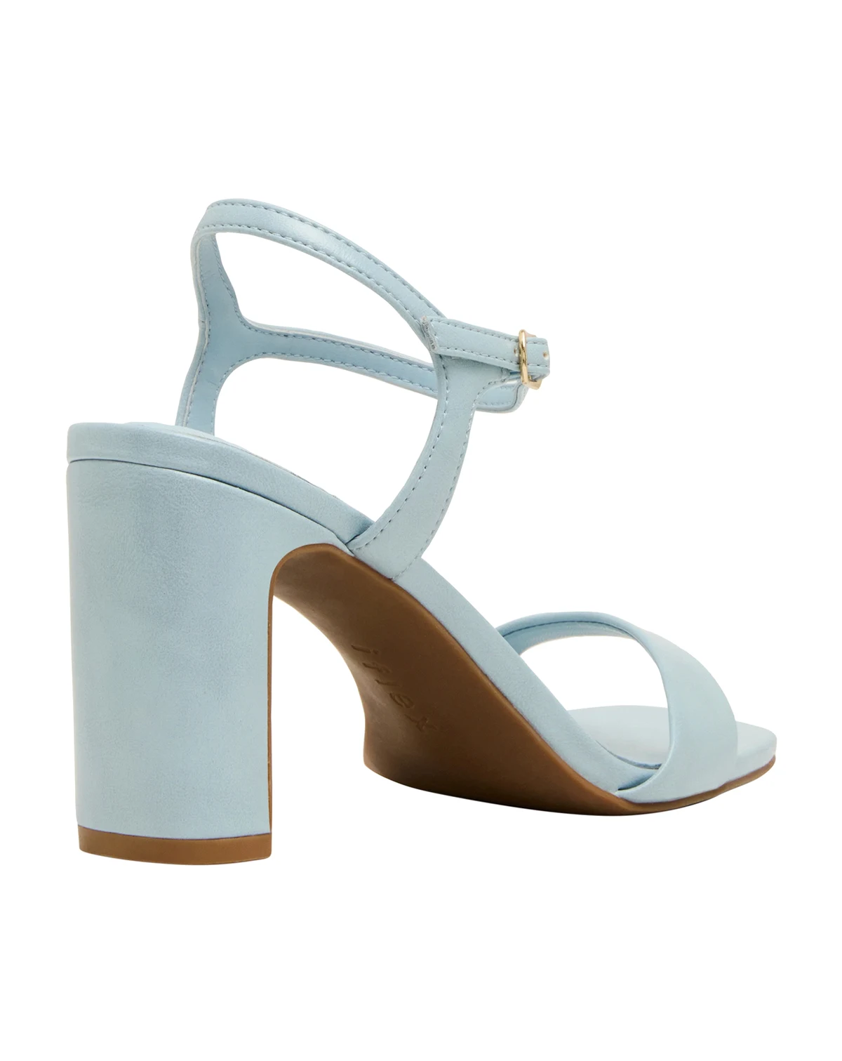Sleek straps and an open toe frame the foot with understated allure. A heel designed to carry you gracefully from day into night.