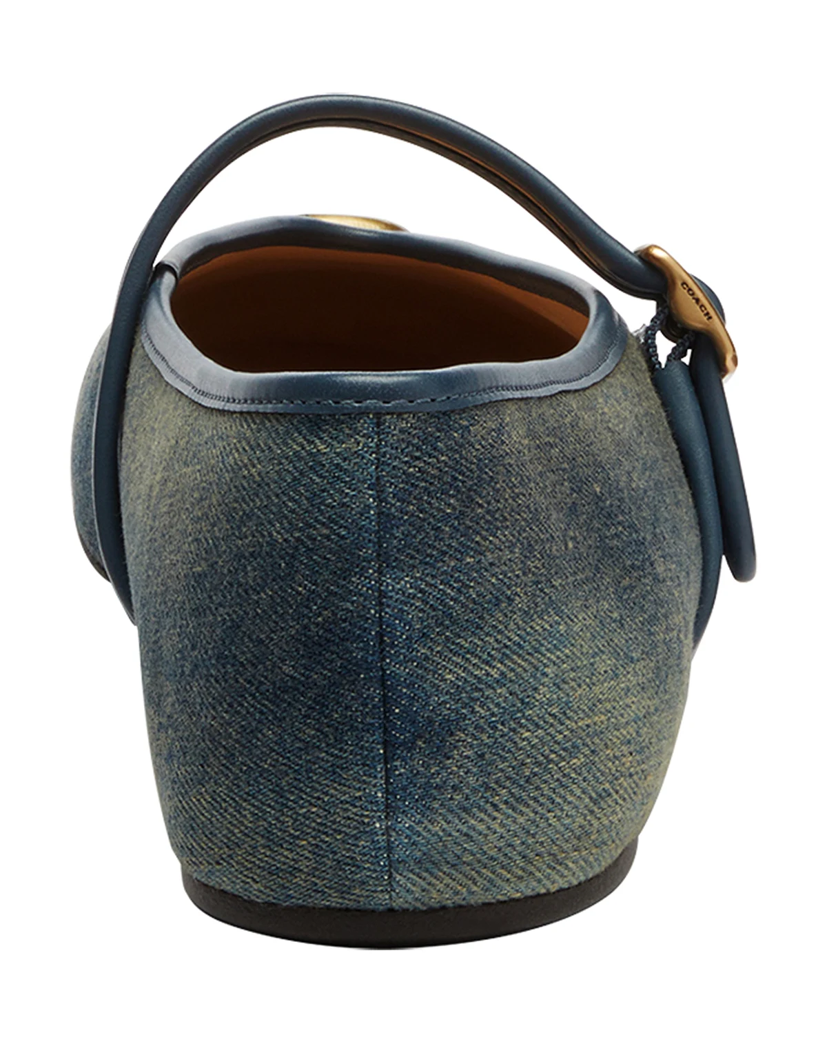 A classic silhouette to dress up or down, Coach's Sculpted C Mary Jane is crafted of high-shine textured patent leather or soft, man-made leather and denim. Featuring a comfortable padded footbed and durable rubber outsole, it's finished with a buckle closure and tonal C hardware.