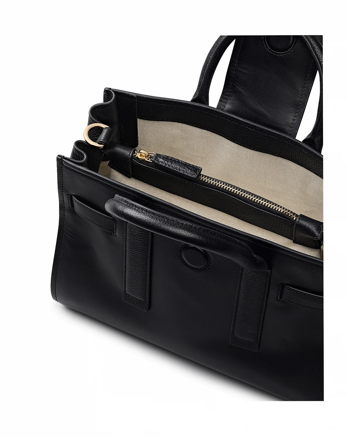 Thoughtful details elevate the classic features of this St Pancras Lane Italian suede grab bag. The leather handles extend into long rectangular tabs, while a woven belt adorns the top edge. Inside, a canvas zipped pocket divides the spacious compartment and provides the organization you can always expect from a Radley design.