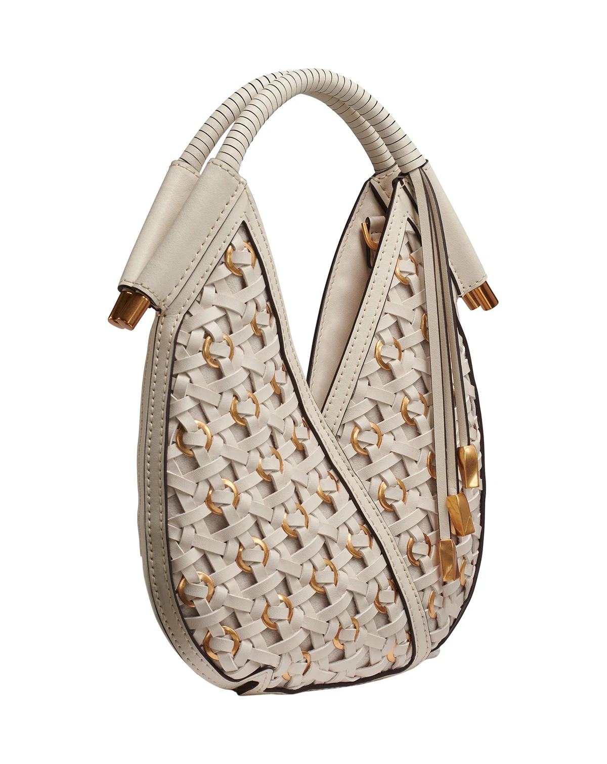 Boasting a woven exterior with chic gold-tone grommet detailing, this Donna Karan New York crossbody handbag offers a compact profile. The included crossbody strap and wrapped top handle provide multiple carrying options.