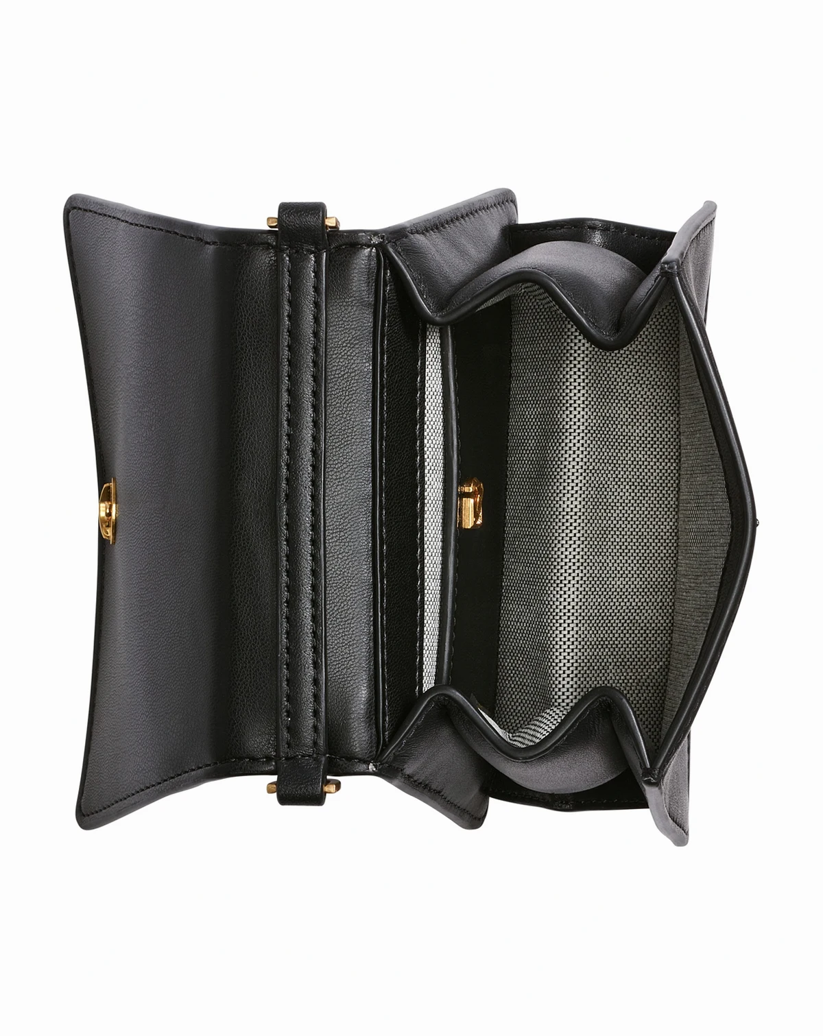Carry essentials with ease in this Donna Karan New York tulle mini crossbody bag, designed with a magnetic closure for secure storage. A slip pocket provides convenient organization, while the top handle and adjustable strap allow effortless versatility.