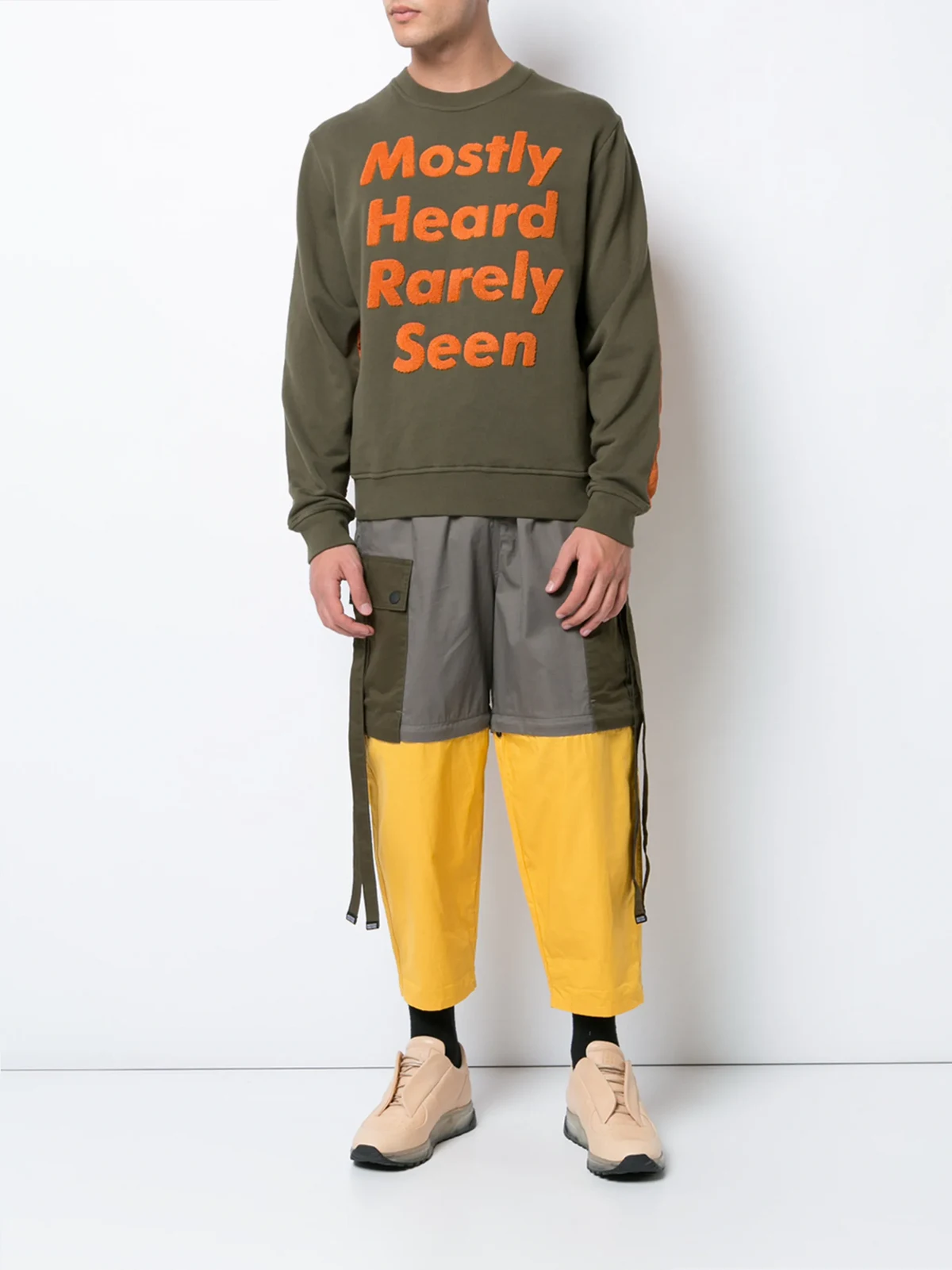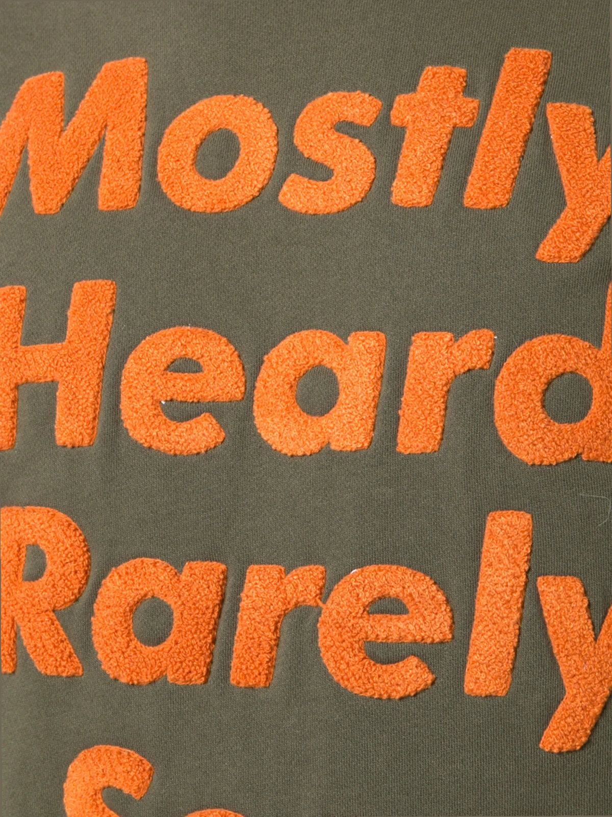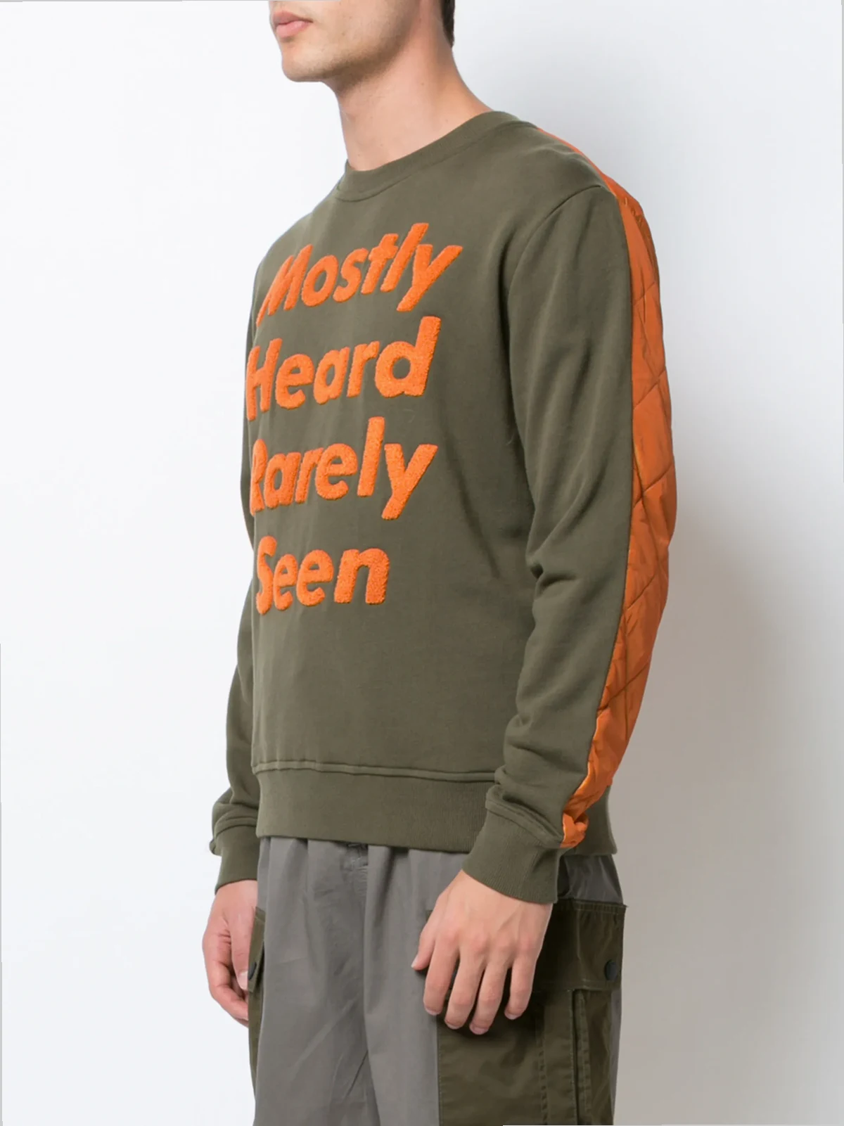 Khaki green and orange cotton logo patch sweatshirt from mostly heard rarely seen.