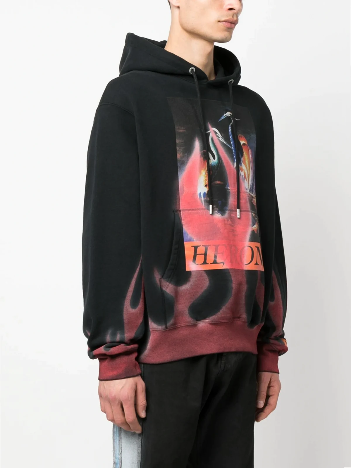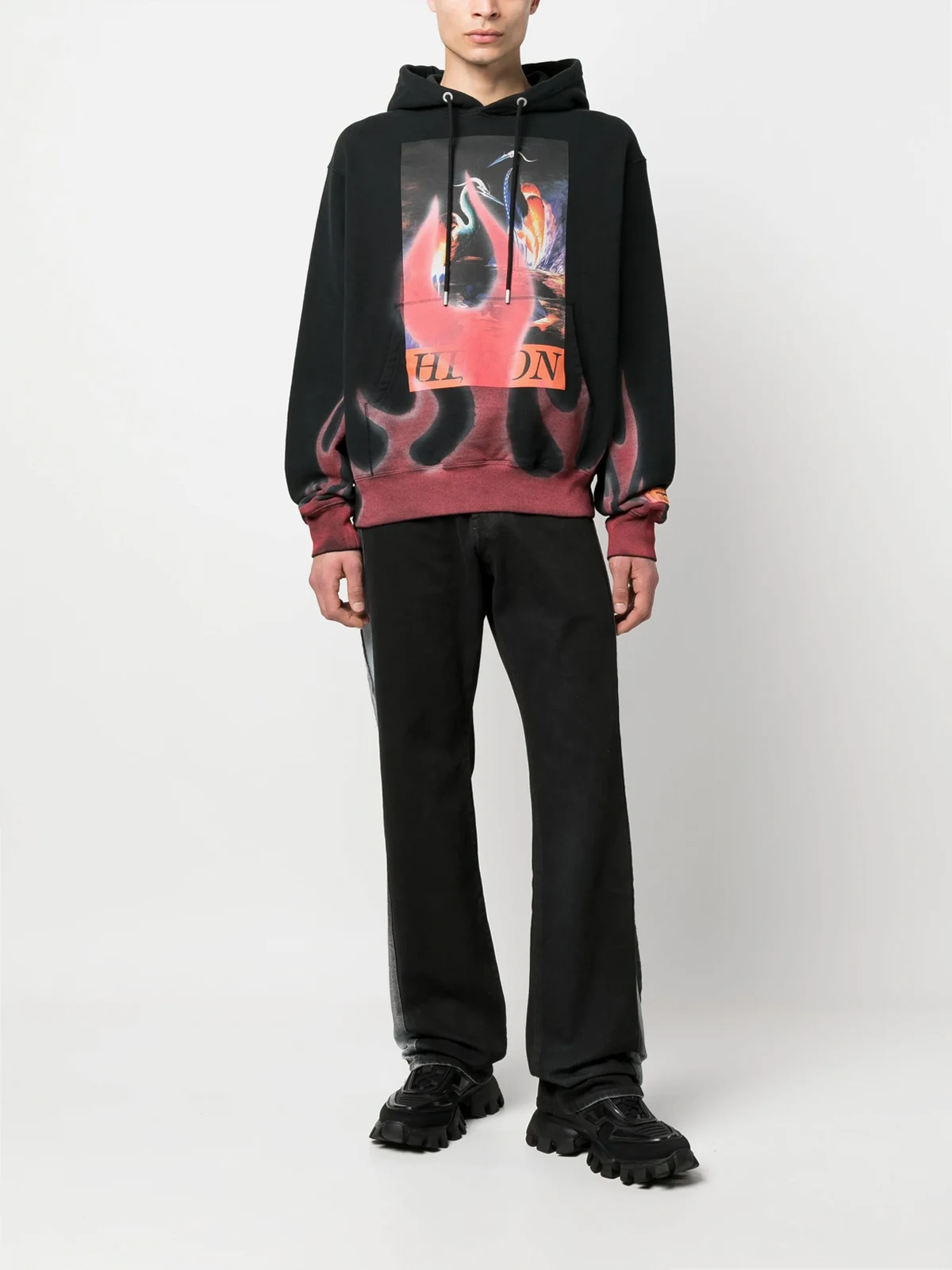 flame-print cotton hoodie
