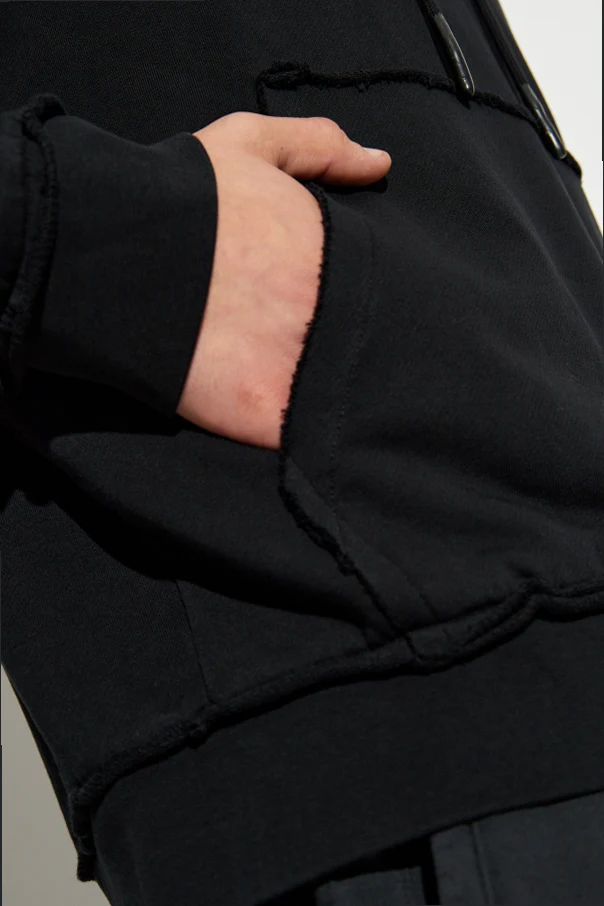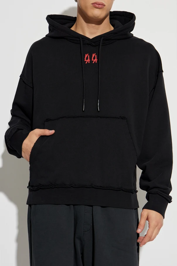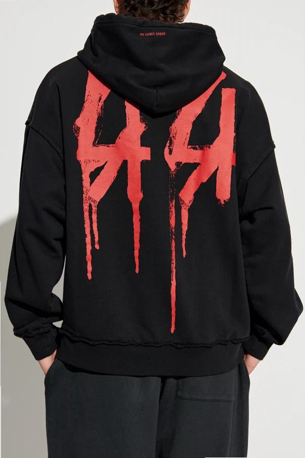 Epitomizing urban sophistication, this black hooded sweatshirt by 44 Label Group makes an audacious statement. Crafted from supremely soft, premium cotton, the garment features a relaxed, subtly oversized silhouette, expertly merging comfort and contemporary allure. The ample, adjustable hood and raw-edged kangaroo pocket effortlessly complement the distinctive aesthetic.