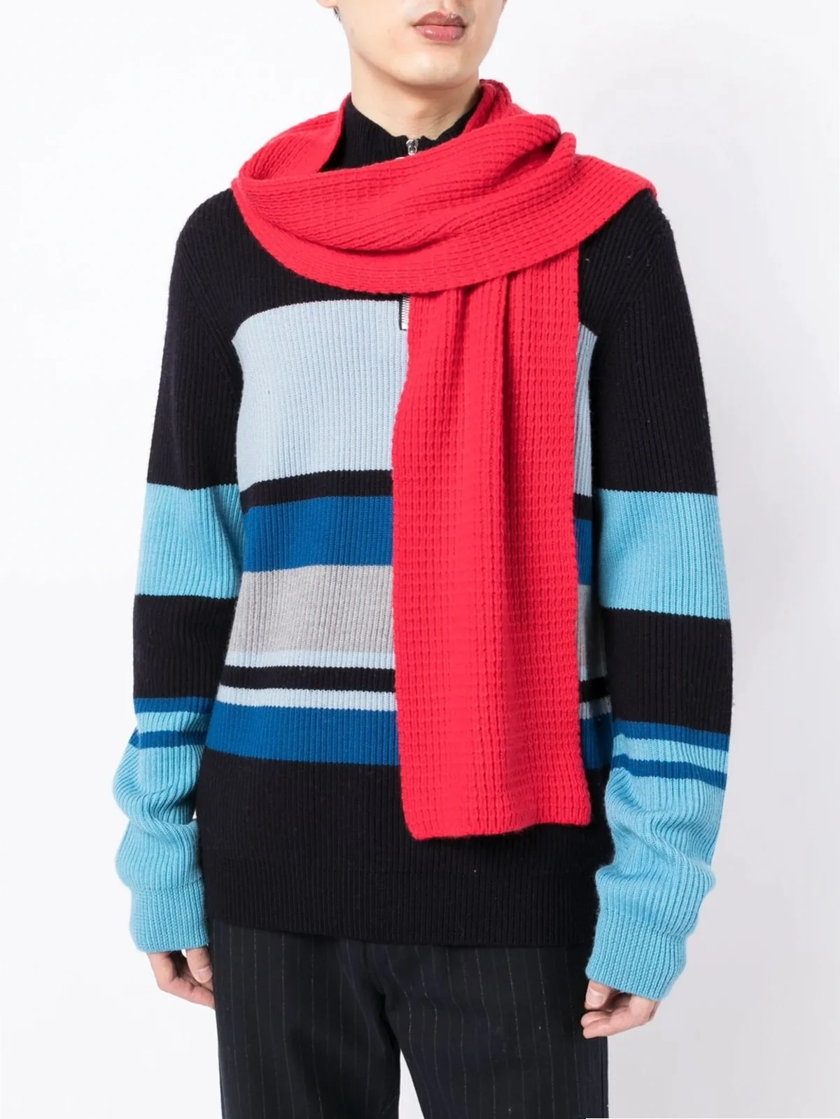 bright red cashmere rectangle shape waffle knit finished edge