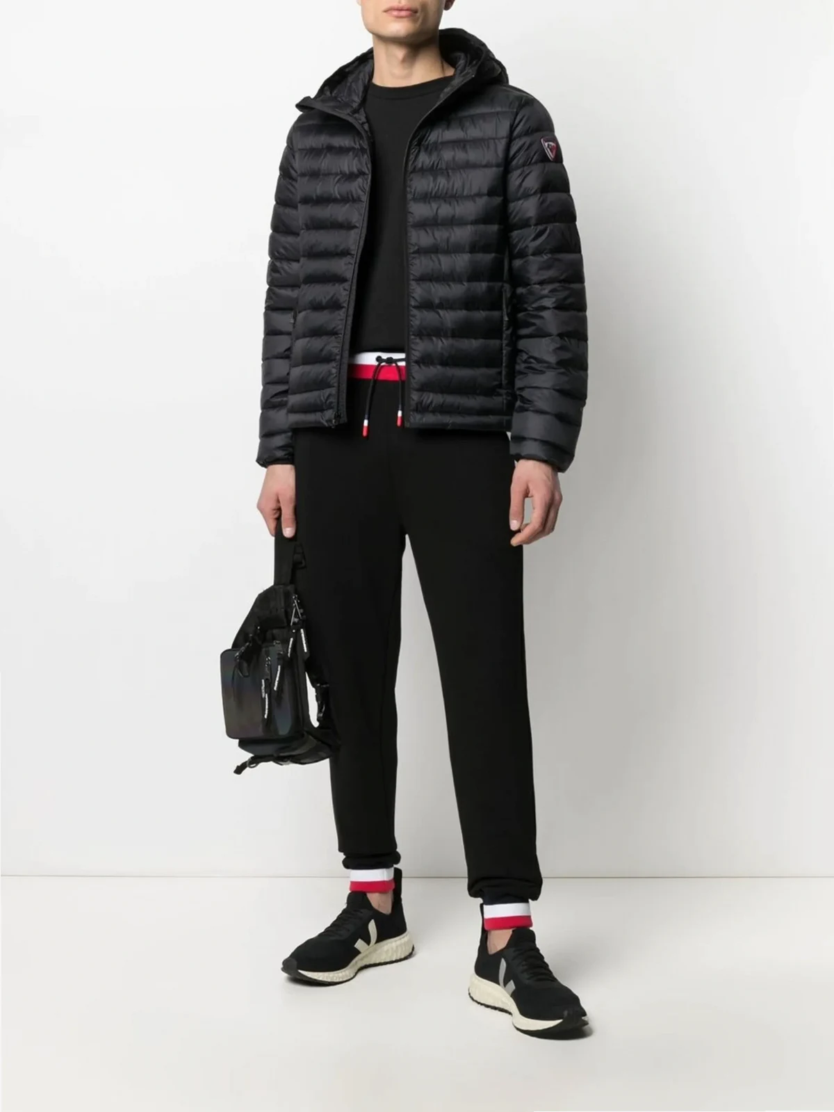 black padded design classic hood long sleeves logo patch at the sleeve front zip fastening two zip-fastening pockets
