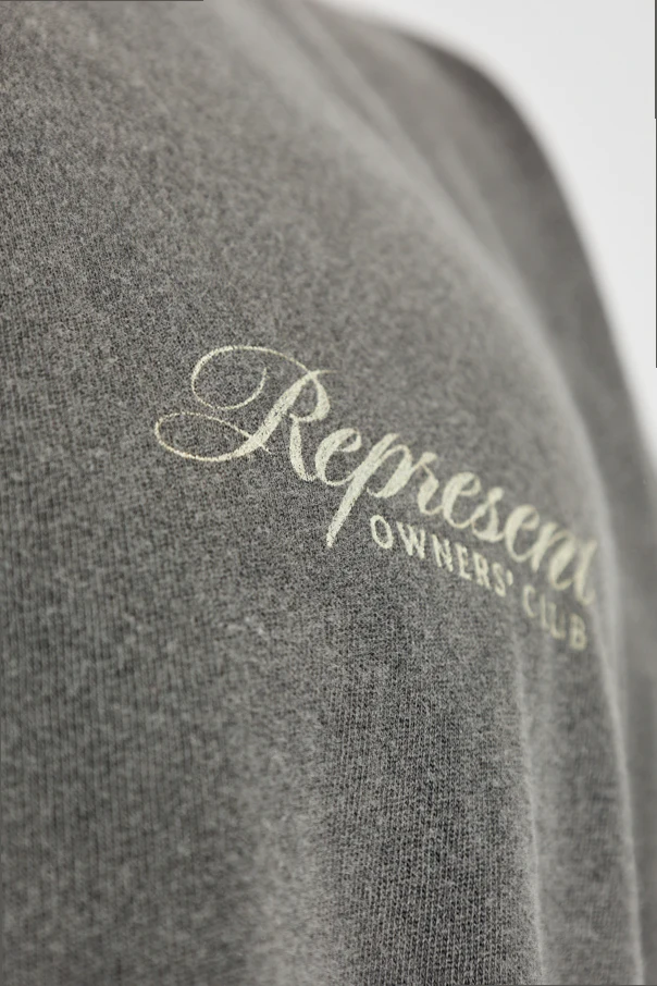 Distinguished by the discreet Represent Owners’ Club insignia on the chest and bold, stylized lettering dominating the back—featuring the phrases “Powered by Enthusiasts” and “for enthusiasts”—this piece encapsulates exclusive appeal for those who appreciate superior craftsmanship and iconic branding.