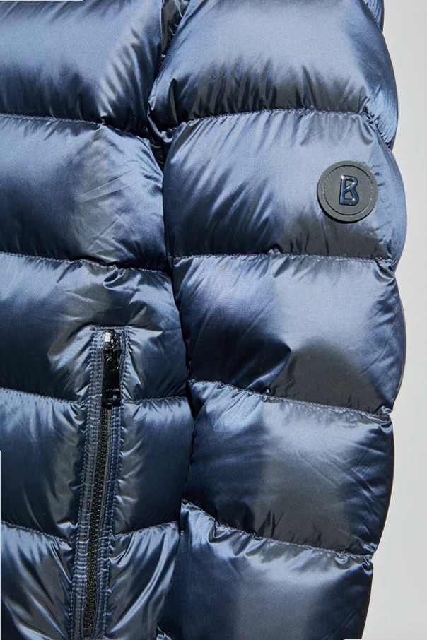 The Hugh Down Jacket by BOGNER epitomizes refined urban outerwear. This silhouette boasts a classic, short, regular fit with subtly broadened shoulders, seamlessly merging sport-inspired design with sophisticated elegance. Horizontal quilting ensures an even distribution of luxurious duck down fill, while accentuating the jacket’s modern and exclusive aesthetic. Crafted from a lustrous, wind-resistant polyamide shell—possibly treated for additional moisture protection—the surface exudes a polished, premium allure.