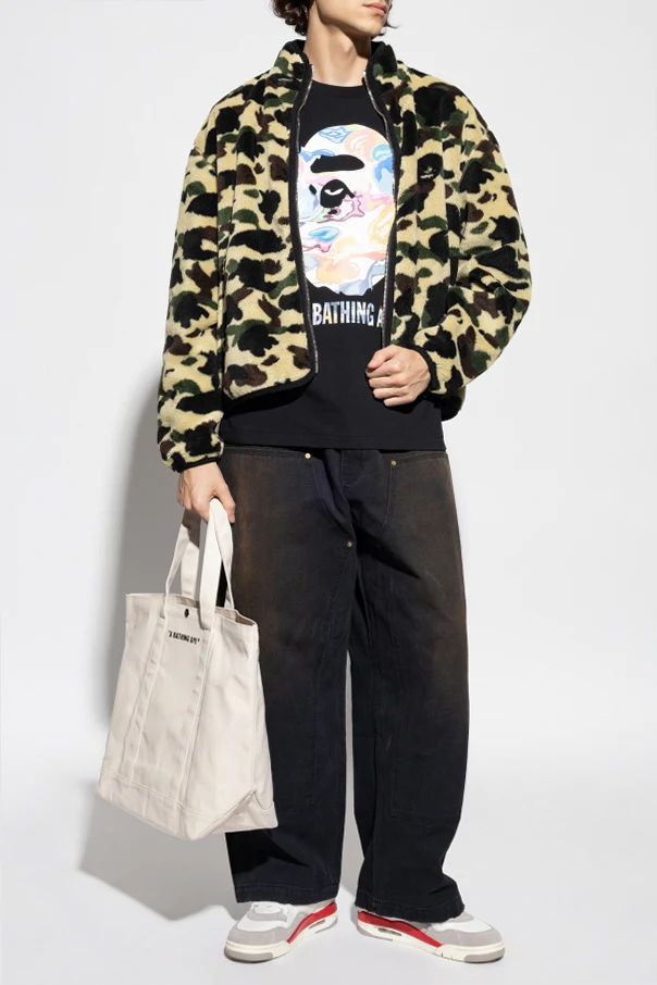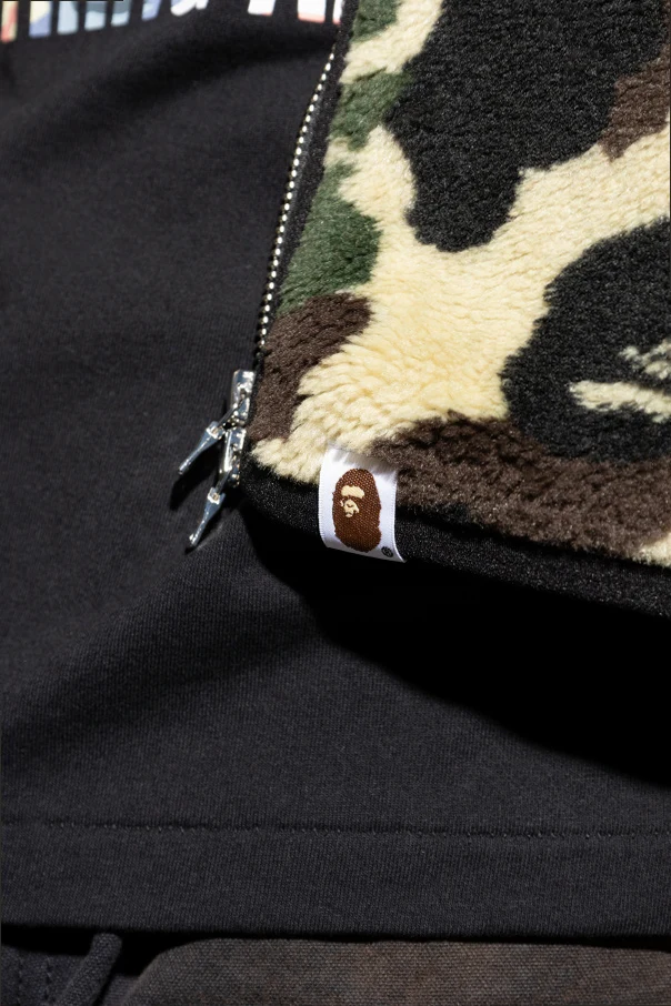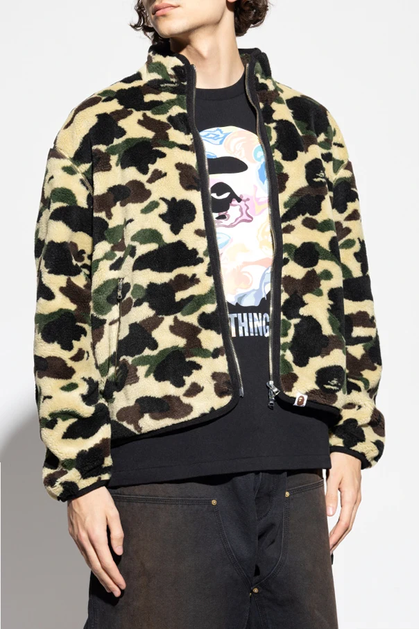 Revel in the refined urban aesthetic of this zip-up fleece by A BATHING APE® . Crafted from sumptuous, thick-textured fleece, this piece invites unmistakable tactile pleasure while ensuring impeccable warmth. The design features a relaxed, regular silhouette enhanced by raglan sleeves for effortless movement and a high collar that gracefully shields the neck.