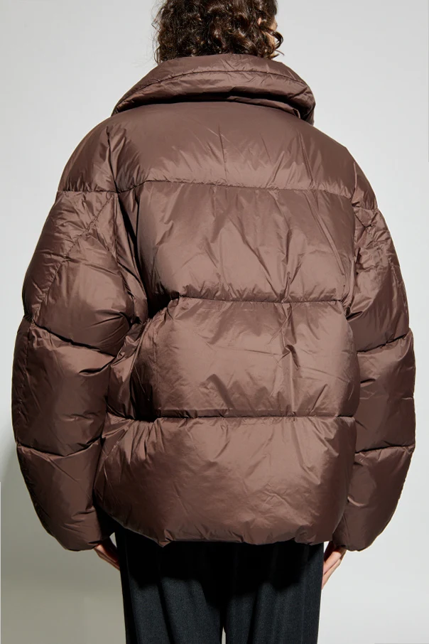 The Massey Down Jacket from Studio Nicholson exemplifies unparalleled sophistication combined with cutting-edge design. Crafted from smooth, subtly lustrous synthetic fabric, this jacket offers a water- and wind-resistant exterior, while generously padded, quilted channels ensure enduring warmth and an impactful silhouette. Its distinctive oversized shape, with voluminous sleeves and broad shoulders, creates a contemporary, runway-inspired presence.