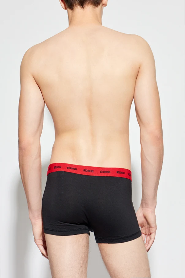 In this exclusive set, discover two pure black pairs and a third adorned with expressive white and red hearts, set against a bold black canvas. The signature detail—a vibrant red elastic waistband—features the Diesel logo elegantly rendered in jet black, encircling the waist with unmistakable designer distinction. This thoughtful balance of timeless simplicity and playful artistry sets these boxers apart.