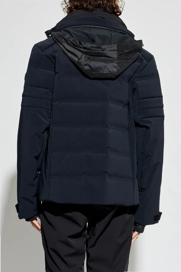 Introducing the Minho Ski Jacket by BOGNER , a distinguished fusion of performance and sophistication for the discerning winter sports aficionado. The jacket captivates with its tailored silhouette—boldly structured shoulders and a subtly accentuated waist—culminating in a classic, mid-length fit that speaks to timeless athletic elegance.