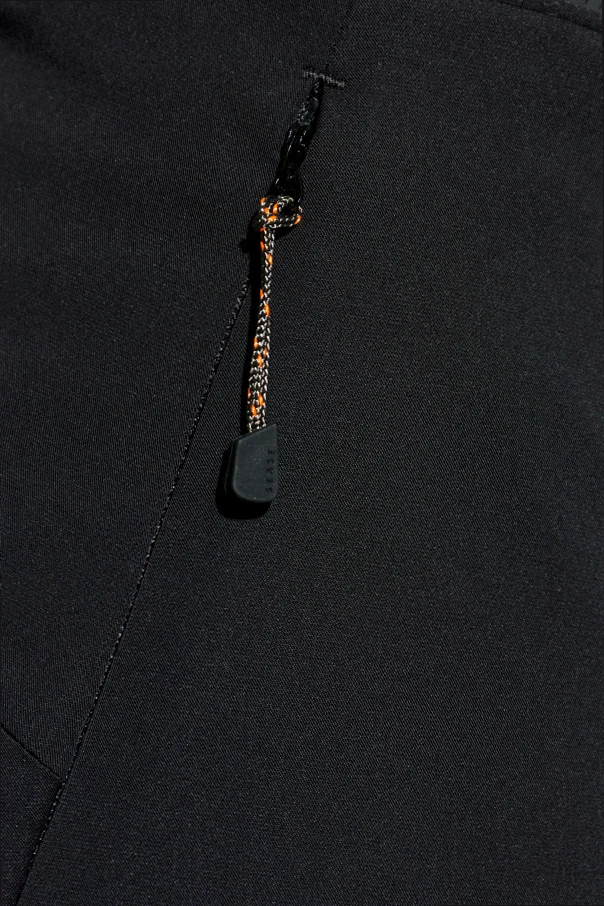 Crafted from a premium technical fabric with a matte finish, these pants are engineered to resist wind and moisture, promising resilience in the face of winter’s challenges. The lower legs are thoughtfully reinforced, offering robust protection from ski boots and sharp ski edges, while maintaining an elegant, streamlined look.