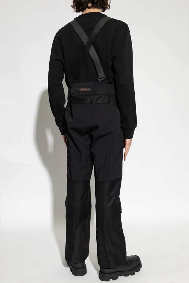 The silhouette features a straight, slightly relaxed leg, offering freedom of movement and unparalleled comfort on the slopes. Integrated, wide adjustable suspenders in matching black ensure a secure and tailored fit. Large, thigh-level zippered pockets are fashioned from resilient, premium textiles—perfect for safeguarding essentials in any conditions.