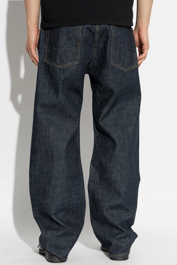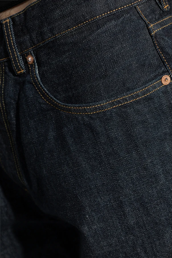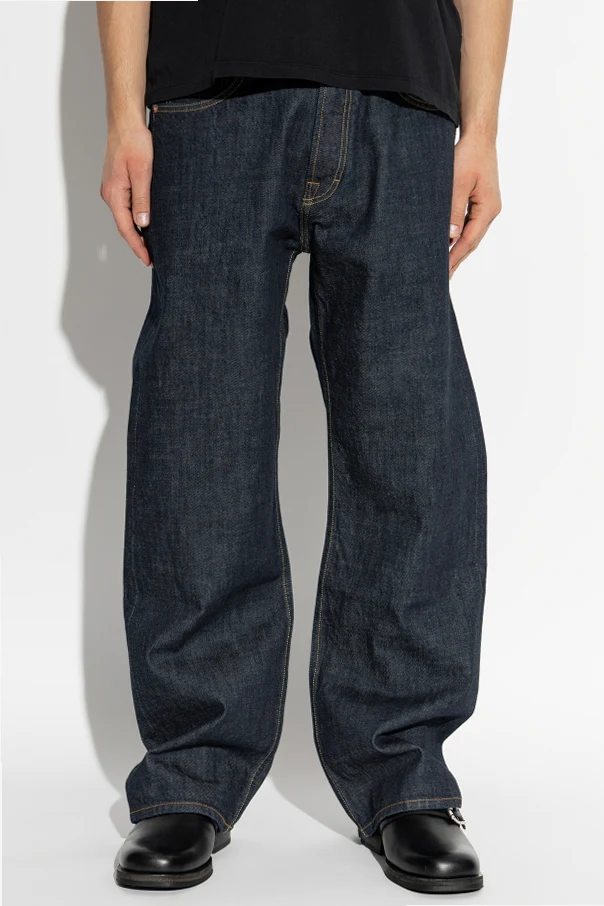 Impeccably crafted by Our Legacy , these Straight-Leg Jeans in classic denim blue epitomize understated elegance and enduring craftsmanship. Rendered in pure, non-stretch cotton denim, their structured fabric preserves the timeless integrity of masterfully tailored jeans. The clean, uniform hue is accentuated by refined orange contrast stitching and polished metal rivets, imparting a sophisticated yet authentic touch.