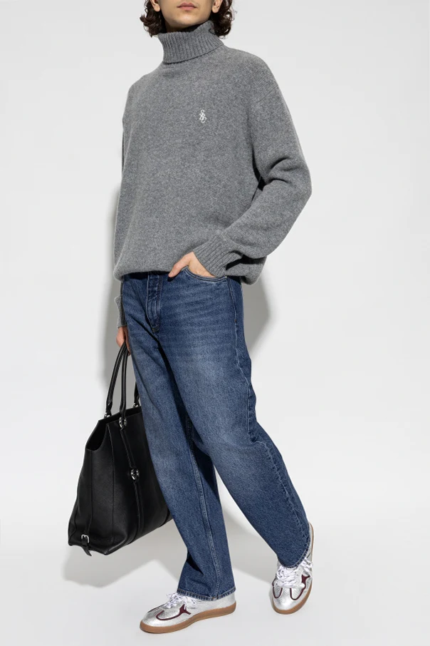 The ‘Central Park Drop’ Turtleneck Sweater by Sporty & Rich exudes refined simplicity, merging classic design with a subtle modern edge. Created from sumptuous, premium wool, this sweater features a soft, delicately plush texture that radiates warmth and exceptional quality. Its gently relaxed silhouette is distinguished by well-defined shoulders and a straight torso, while ribbed cuffs and hem provide both structure and timeless character.