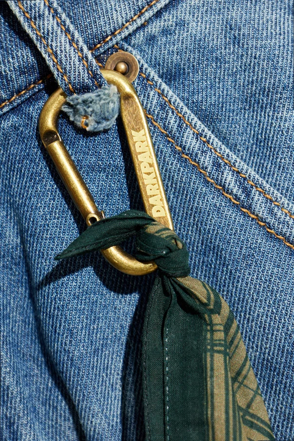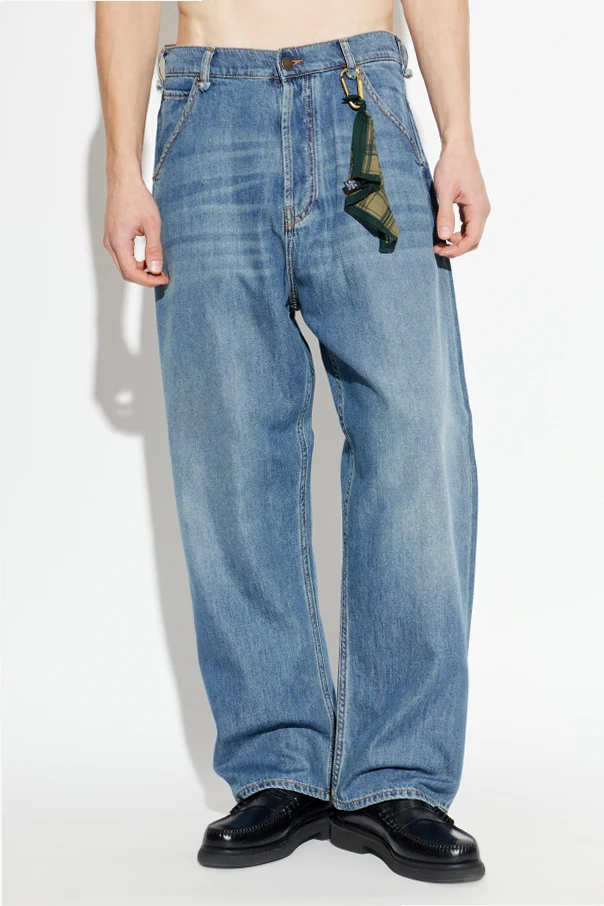 Designed with precision, the ‘Donte’ jeans are distinguished by wide, stitched rear patch pockets and pronounced front slip pockets with detailed seams. A decorative keychain, accented with a green check fabric and designer-embossed logo, elevates the piece with an artistic flourish. The signature leather logo patch at the back and contrasting light stitching provide an unmistakable mark of exclusivity.
