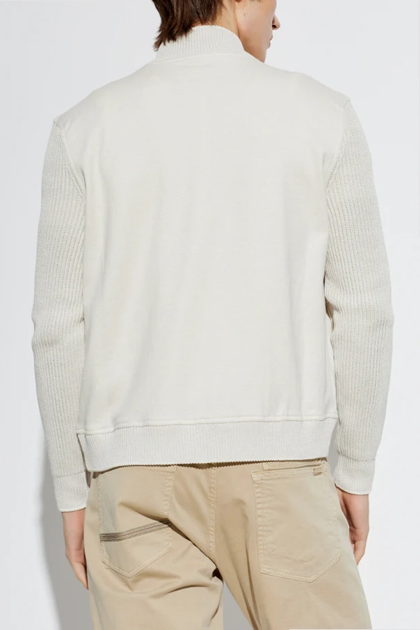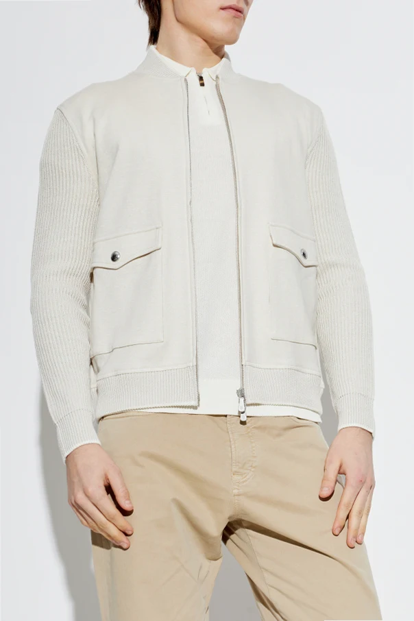 Embrace understated sophistication with this classic, tailored jacket by Eleventy . Crafted from a carefully selected blend of cotton and linen, the piece showcases a refined texture—ribbed sleeves elegantly contrast with the smooth front and back, creating a harmonious interplay of tactile elements. Its warm, solid beige tone radiates an exclusive, muted charm suitable for any casual yet elevated setting.