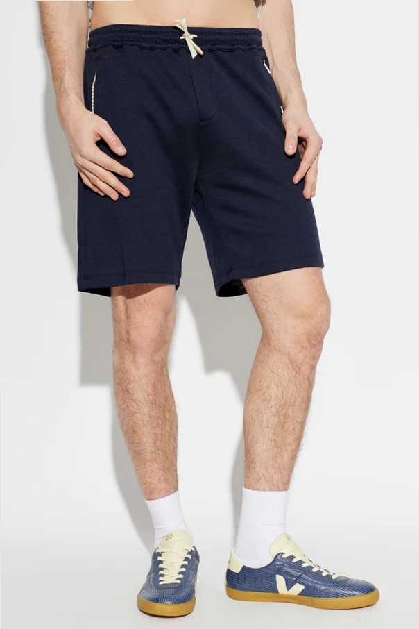 Designed in a versatile neutral beige hue, these shorts are cut with a clean, straight silhouette that falls just above the knee. Sleek metallic silver zippers accent two side pockets, lending both elegance and practicality, while the back features two tailored patch pockets for additional functionality. The elasticized waistband, finished with a contrasting light drawstring, ensures a perfect, personalized fit. Each seam and finish embodies artisanal precision, making these shorts a true statement of understated luxury.