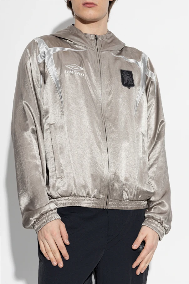 Distinctive contrast piping graces the shoulders and chest, enhancing the garment’s smooth, uniform surface. A masterfully embroidered black crest featuring a mythical griffin emblem adds a subtle touch of distinction to the left chest, showcasing Umbro’s signature attention to detail.