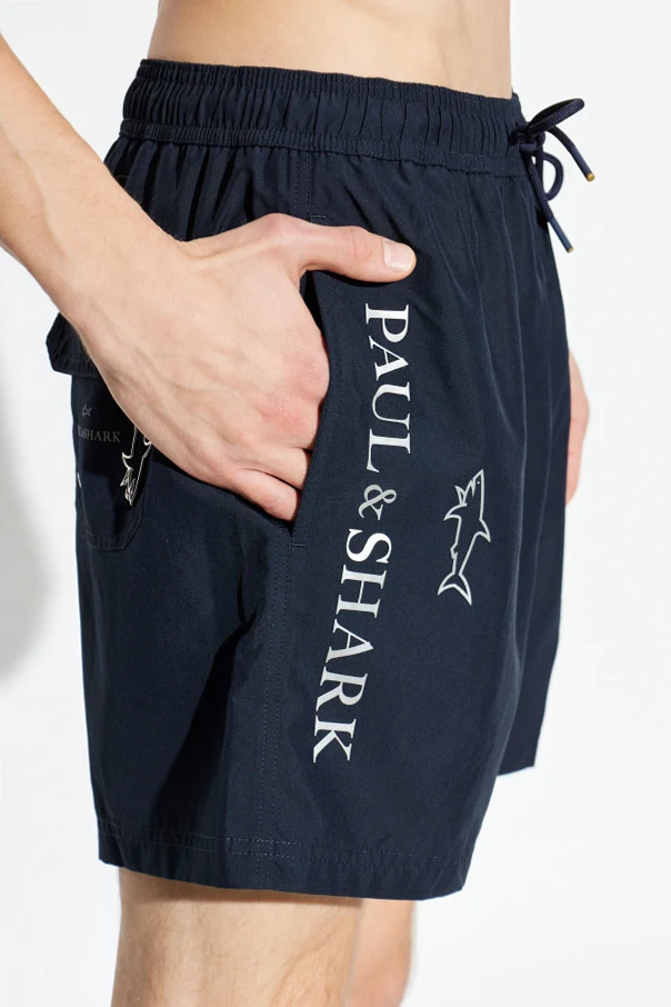 A bold, vertical PAUL & SHARK insignia and the iconic shark motif embellish the left leg, signifying the garment’s distinctive, luxury pedigree.