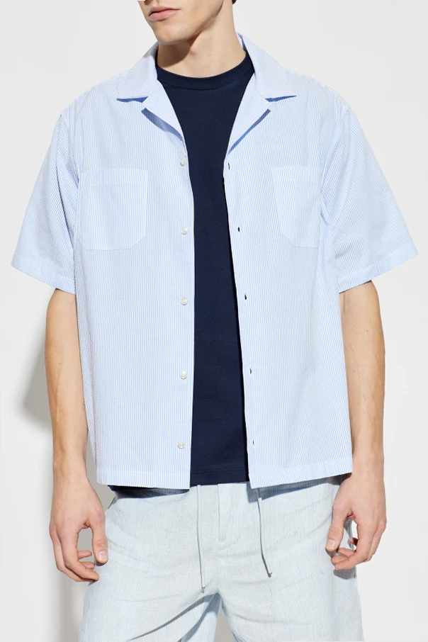 Embrace effortless sophistication with this Paul & Shark Striped Shirt in delicate shades of light blue and white. Meticulously tailored from breathable, premium cotton, this short-sleeved classic boasts an easy, slightly oversized silhouette with a straight hem for relaxed refinement.