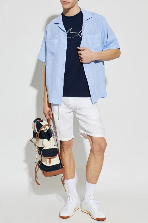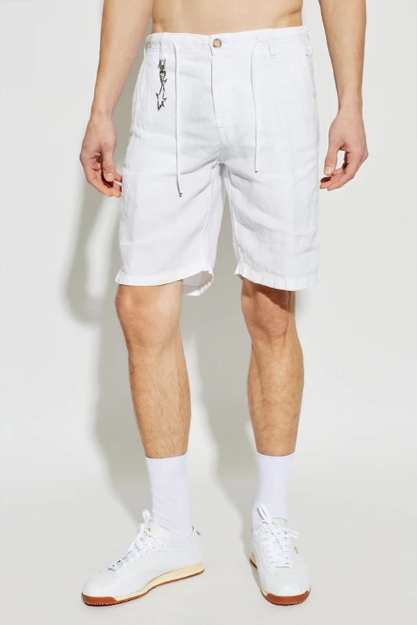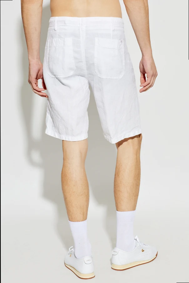 Experience refined summer sophistication with these white linen shorts by Paul & Shark. Expertly tailored from premium linen, they offer a distinctive lightness and superior breathability—qualities emblematic of exclusive warm-weather attire. Their classic straight cut, falling just above the knee, combines understated elegance with effortless comfort.